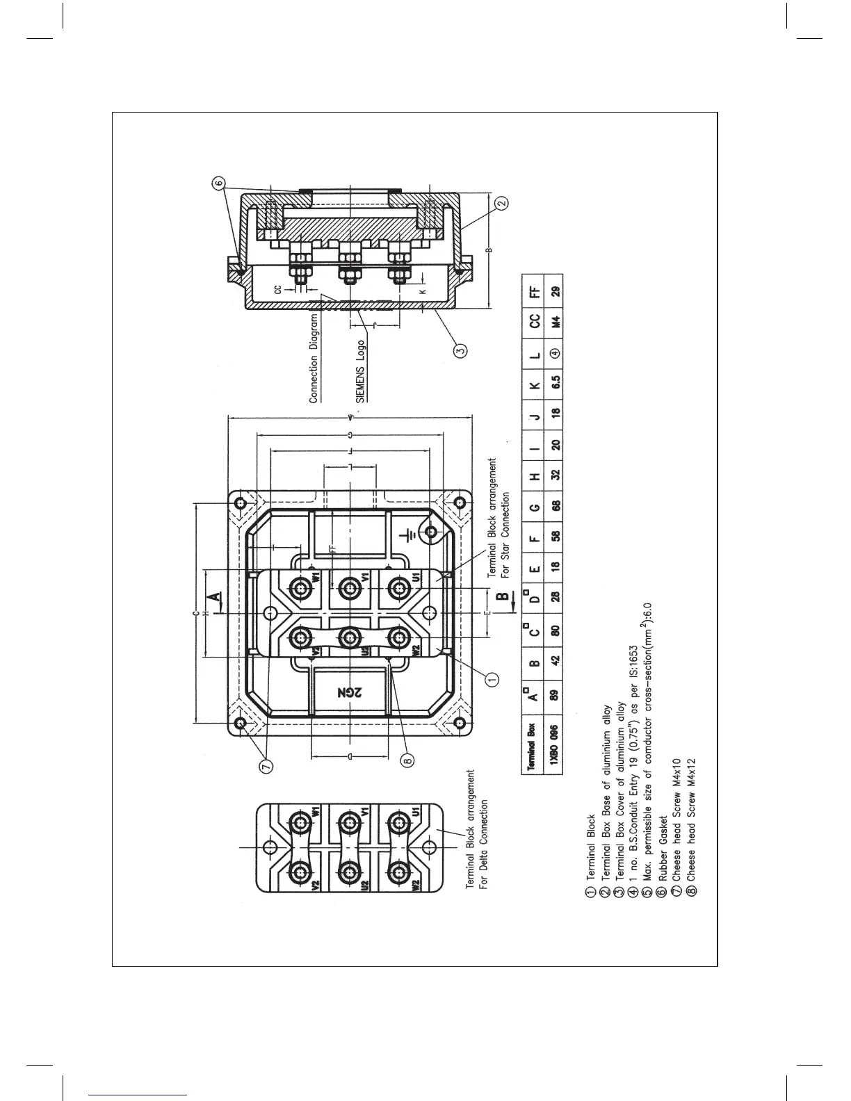 Terminal box for frame sizes 63, 71, 80, 90S and 90L