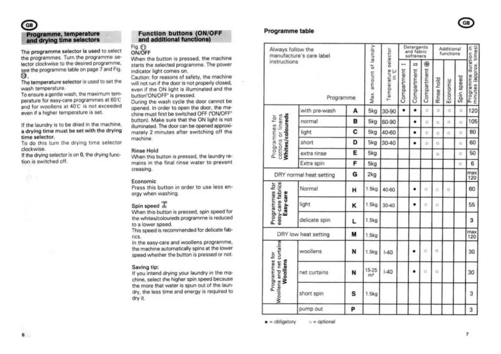 Siemens 3100 - Programme table