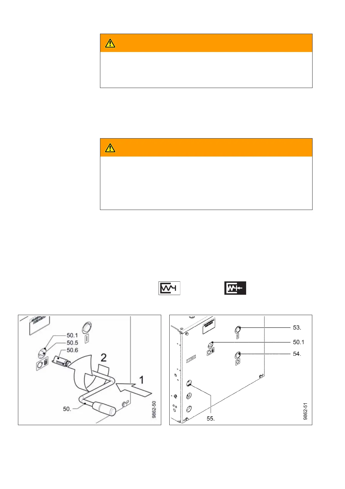1. For this, fit the hand crank (50.) onto the hand crank coupling (50.5) through the