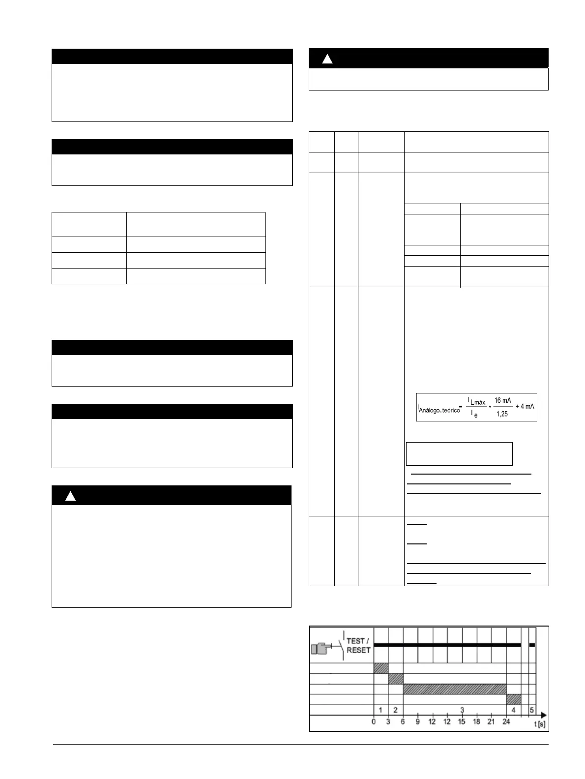 protección. ¡Una actuación o aviso provoca la interrupción del test!
