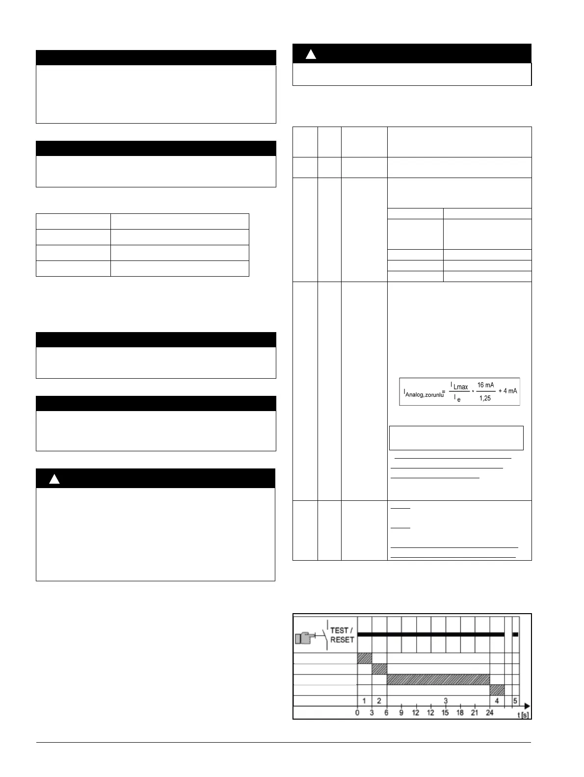 edilmesi gereklidir! Ölçülen elektrik akımı değerleri ve röle