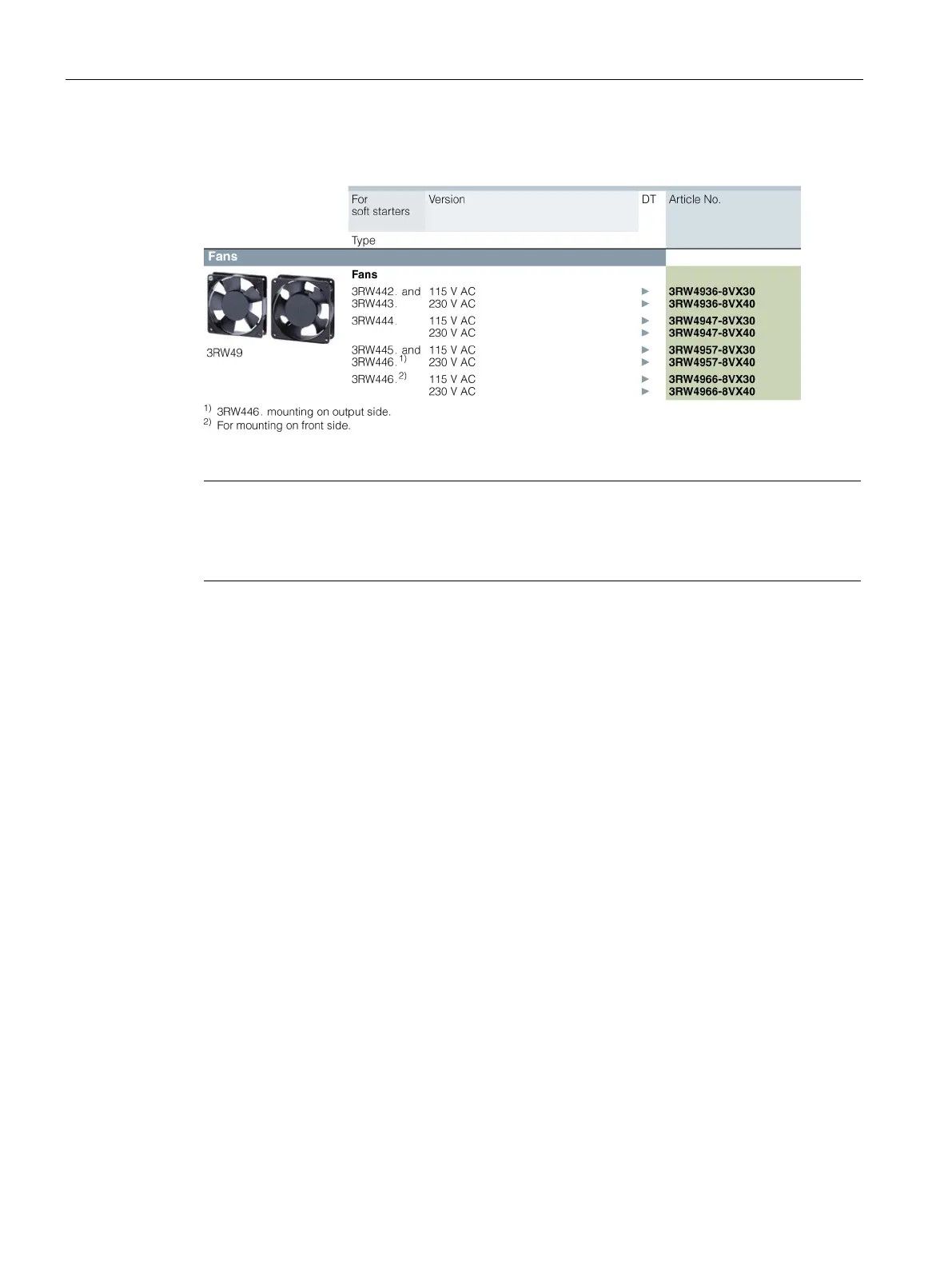 The 3RW4422 and 3RW4423 soft starters do not need fans. These devices are adequately