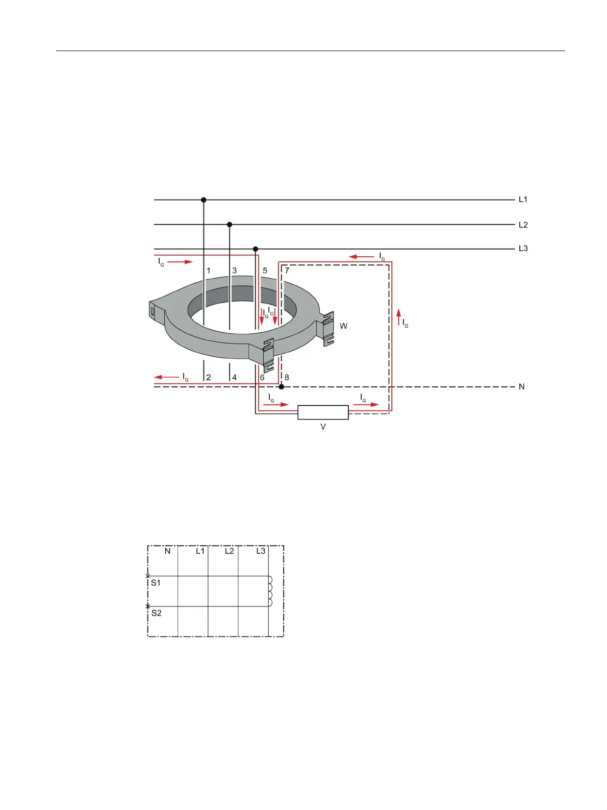 conductors must be routed through the residual current transformer from the same direction.