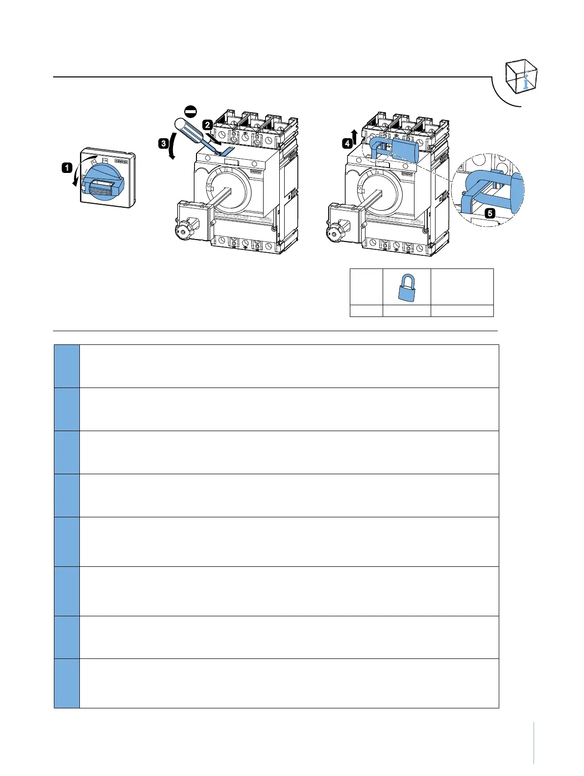 disjuntor dispara sem limitações e o acionamento rotativo só se movimenta após a remoção das fechaduras na posição