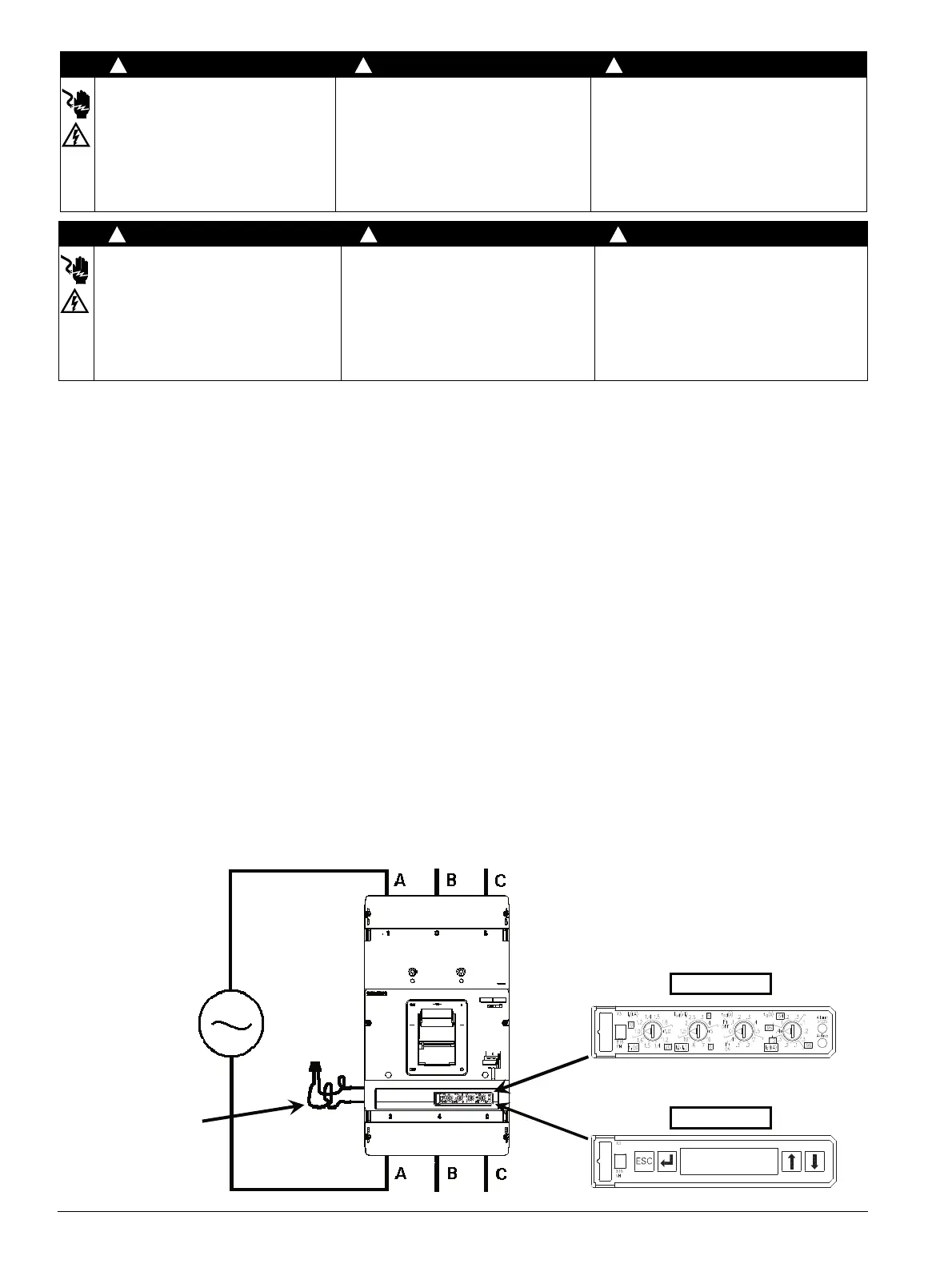 1. Set the GF ALARM SETTING to the minimum setting and GF TYPE = GND RESIDUAL. Set all other trip unit settings to their maximum setting.