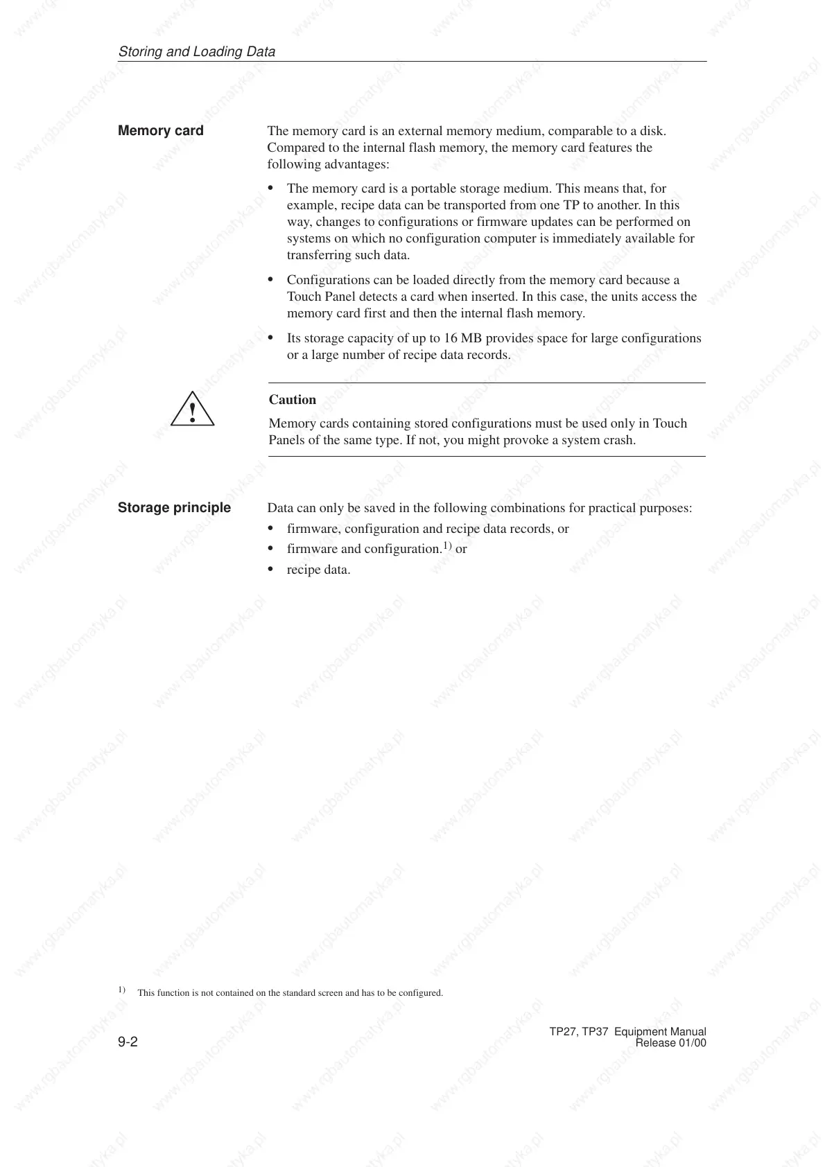 Memory cards containing stored configurations must be used only in Touch