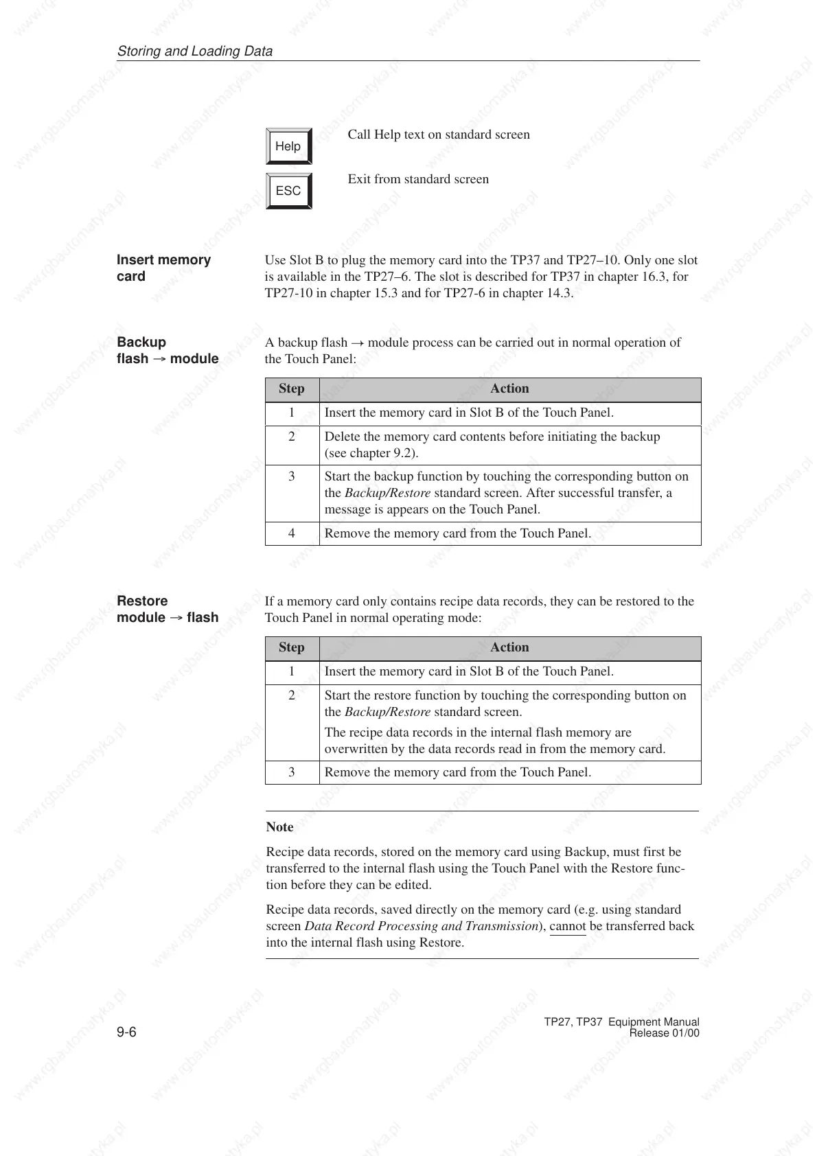 Recipe data records, stored on the memory card using Backup, must first be