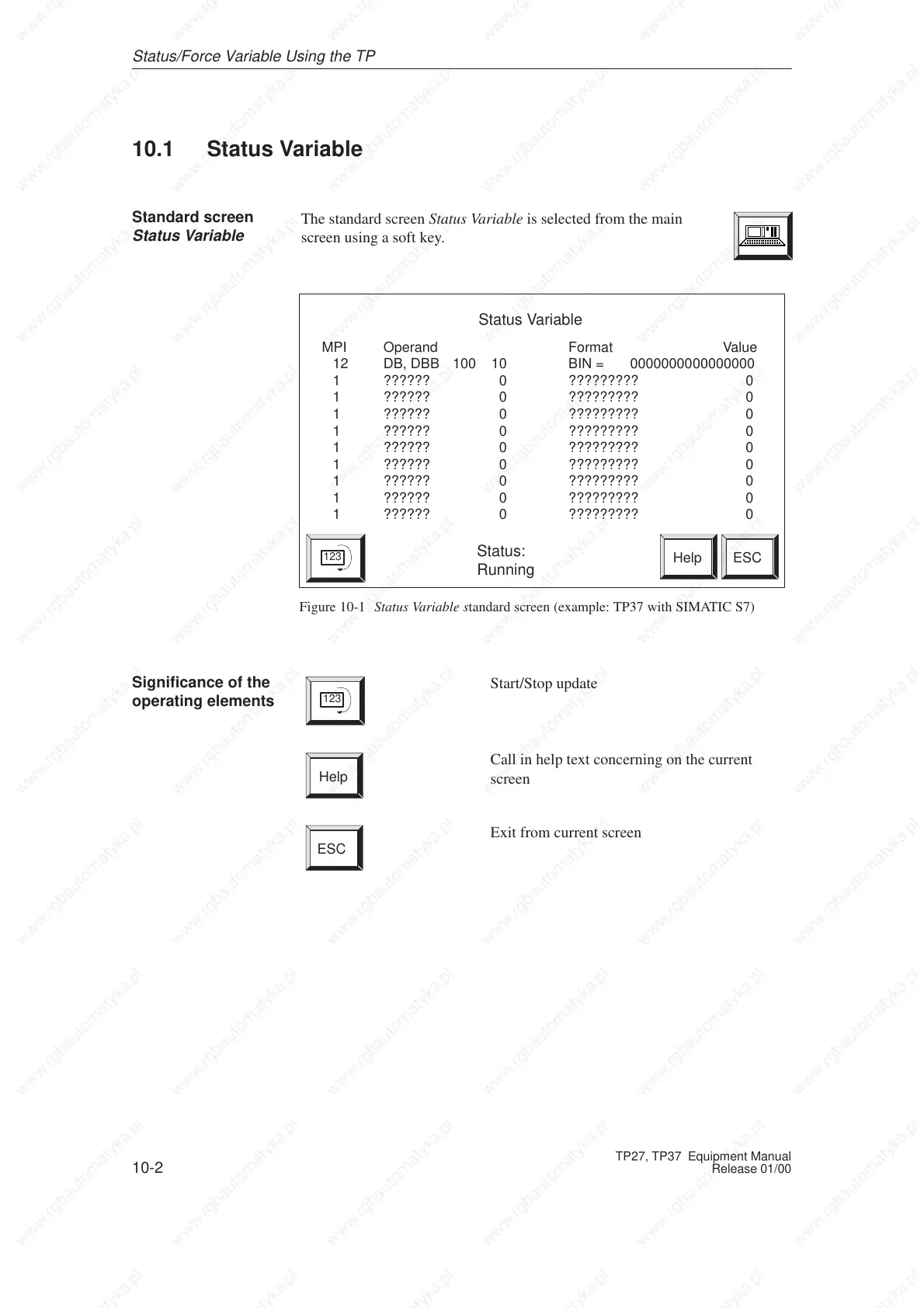 Figure 10-1 Status Variable standard screen (example: TP37 with SIMATIC S7)