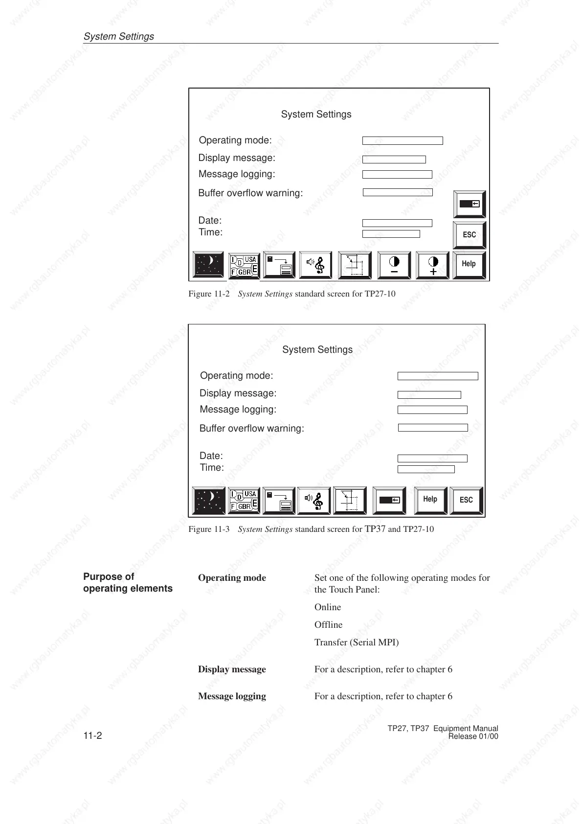 Figure 11-3 System Settings standard screen for TP37 and TP27-10