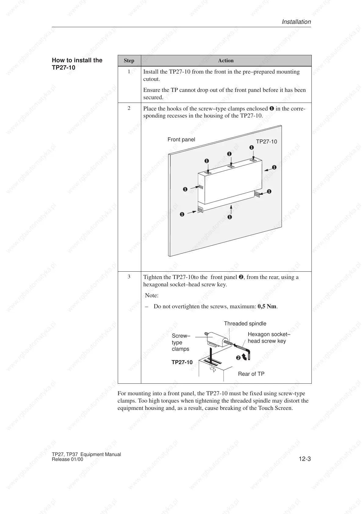 For mounting into a front panel, the TP27-10 must be fixed using screw-type