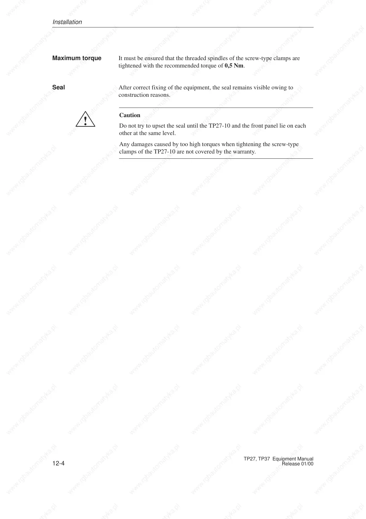 Do not try to upset the seal until the TP27-10 and the front panel lie on each