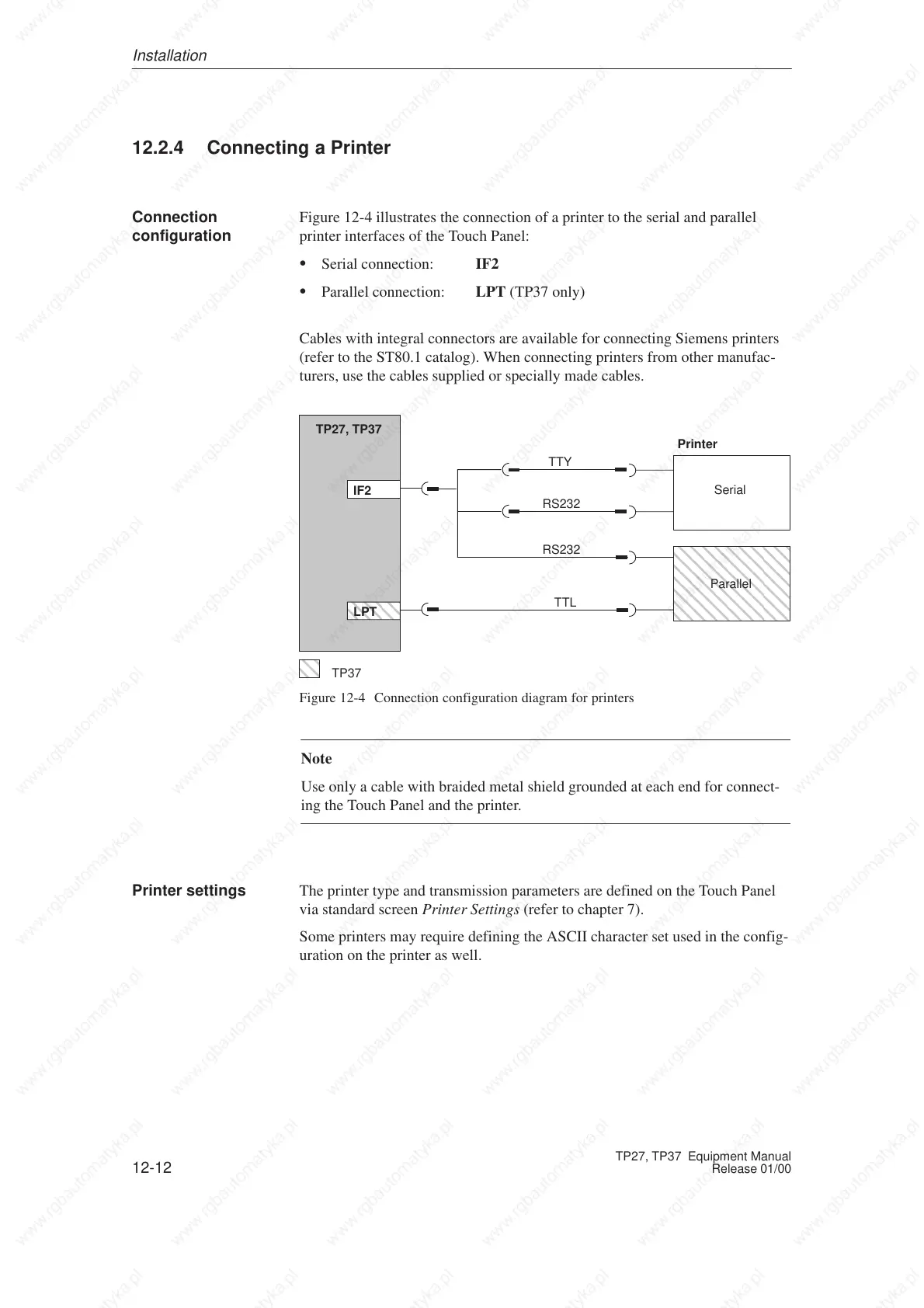 Figure 12-4 illustrates the connection of a printer to the serial and parallel