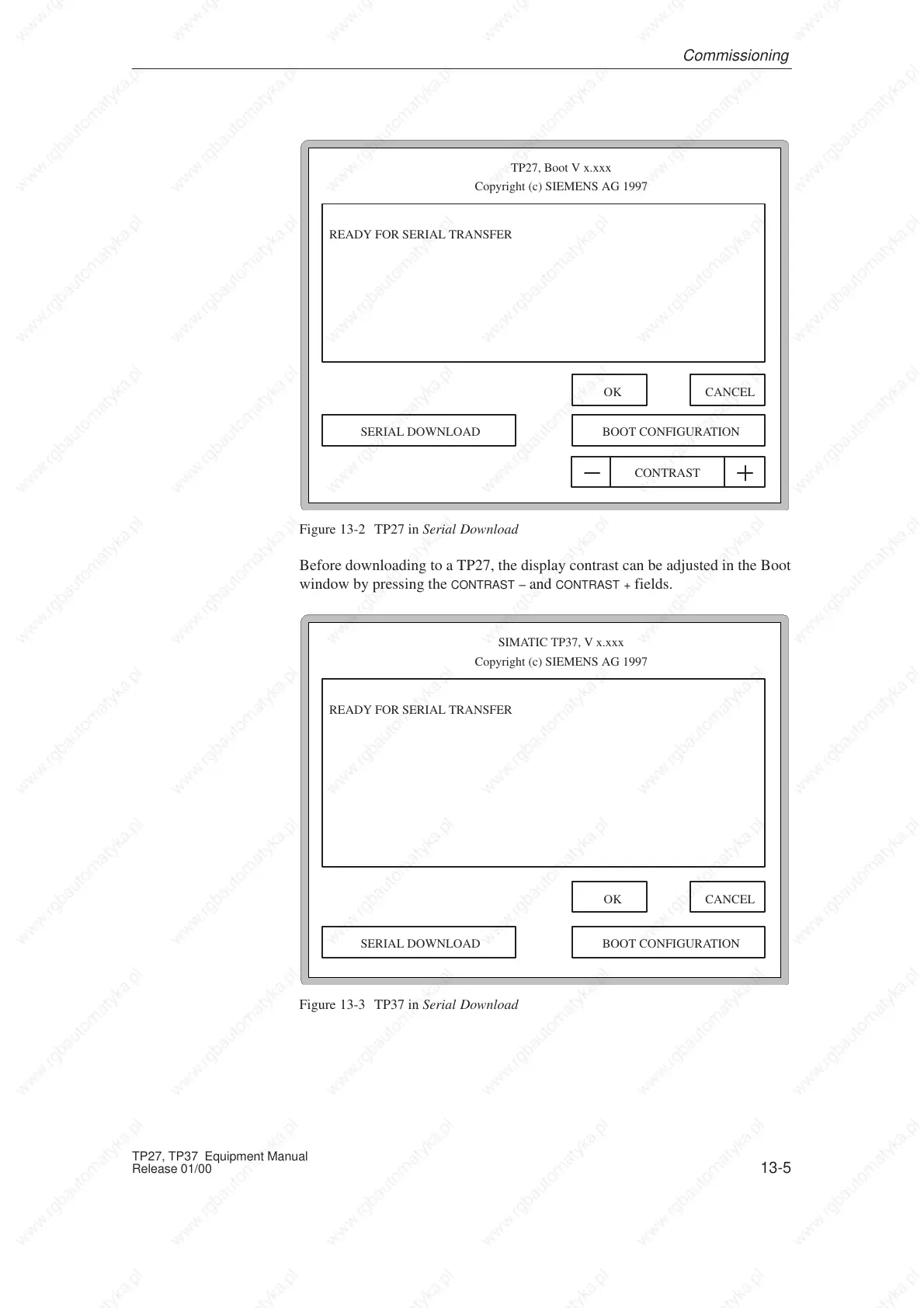 Before downloading to a TP27, the display contrast can be adjusted in the Boot