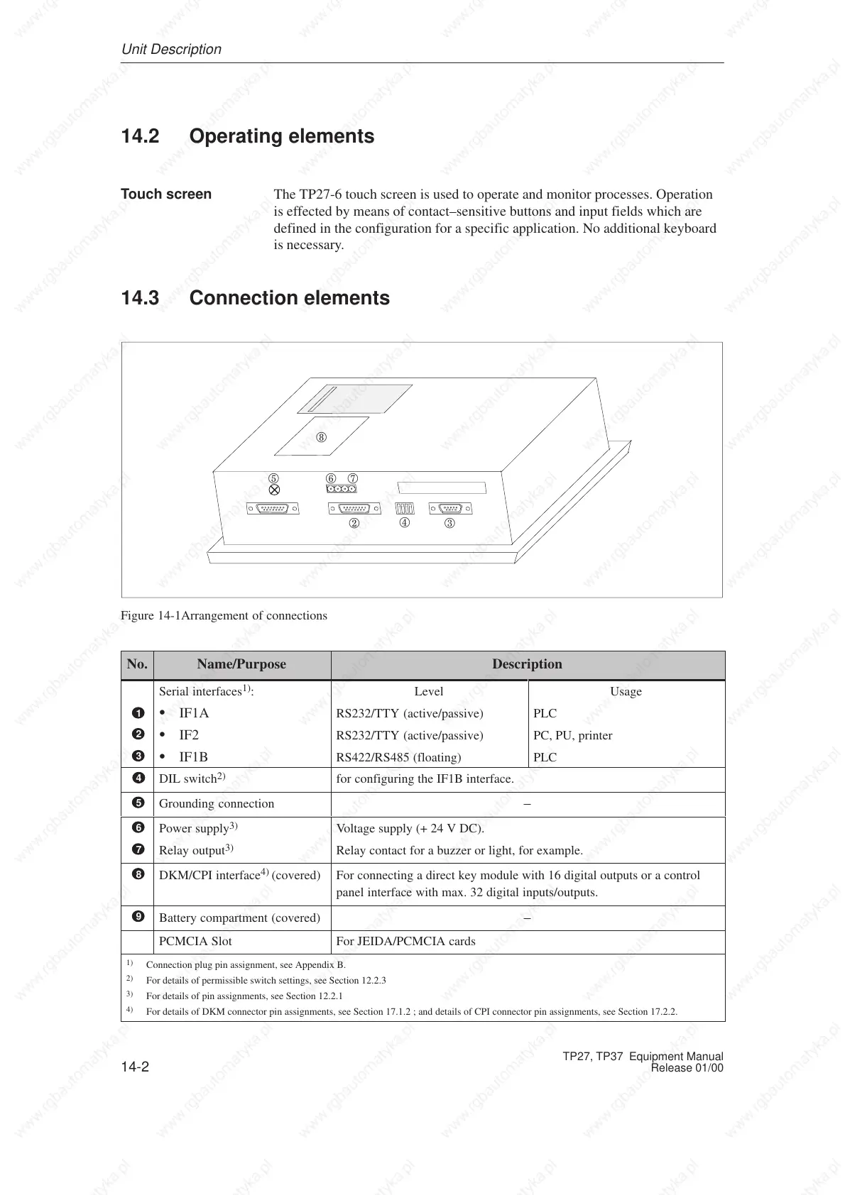 The TP27-6 touch screen is used to operate and monitor processes. Operation