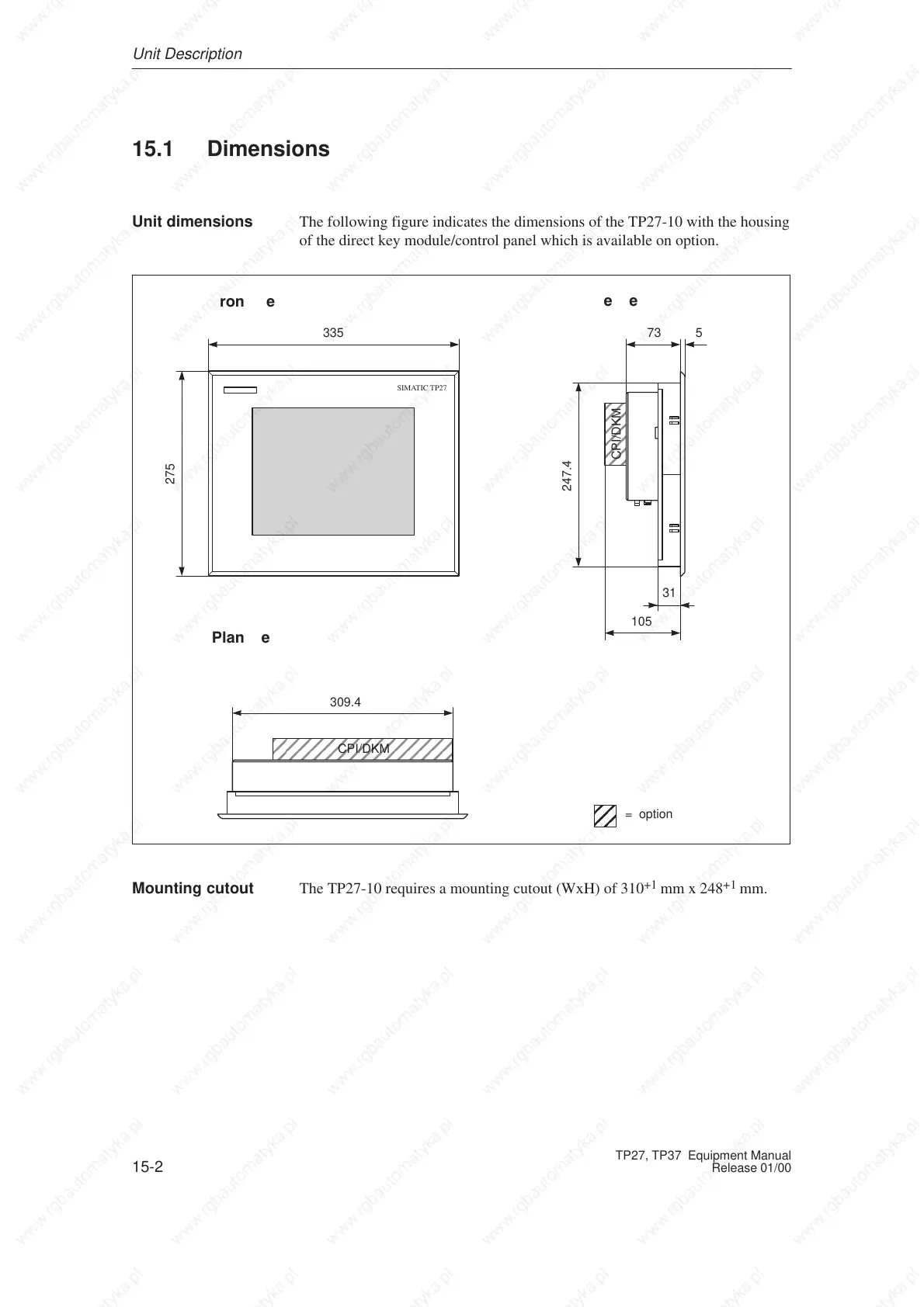 The TP27-10 requires a mounting cutout (WxH) of 310