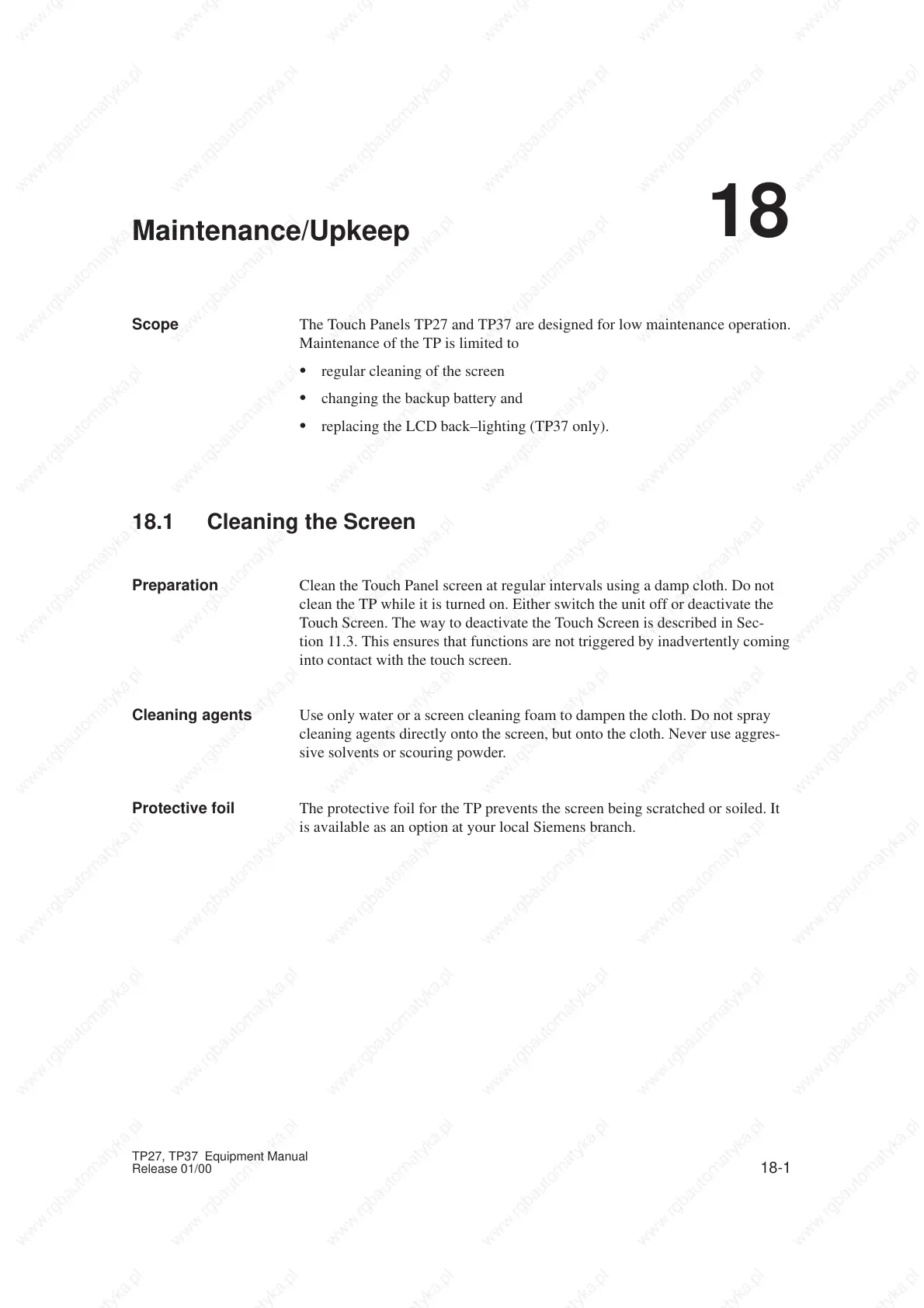 The Touch Panels TP27 and TP37 are designed for low maintenance operation.