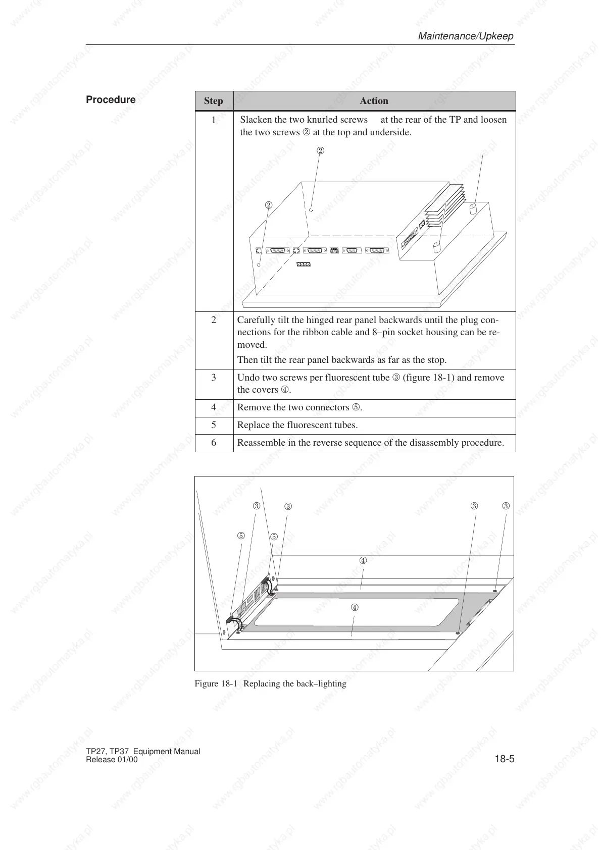 3 Undo two screws per fluorescent tube ® (figure 18-1) and remove