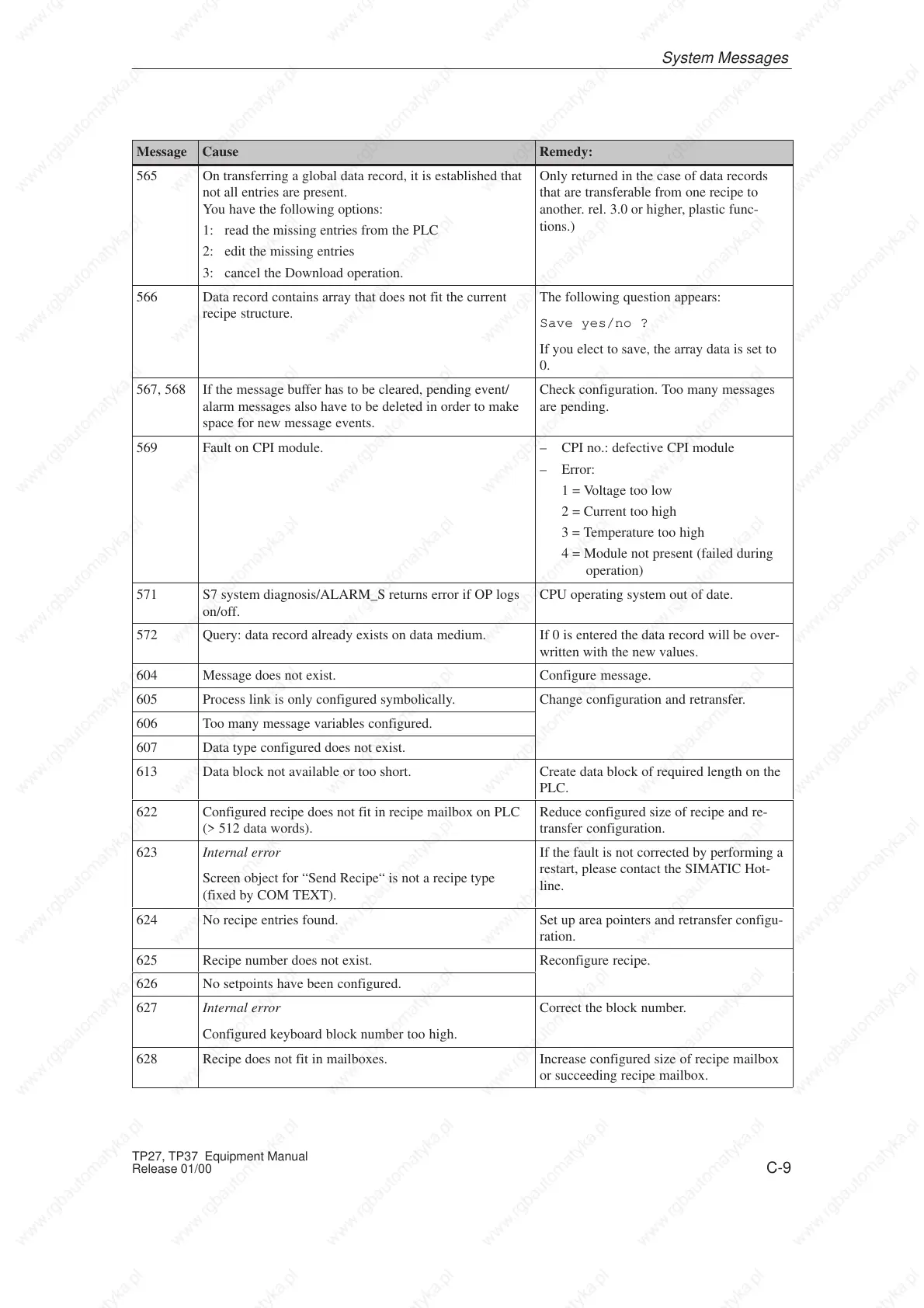 624 No recipe entries found. Set up area pointers and retransfer configu-