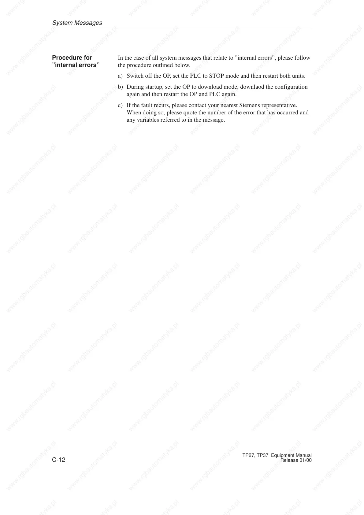 c) If the fault recurs, please contact your nearest Siemens representative.