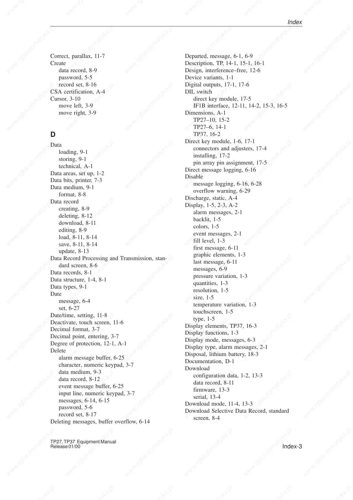 Digital outputs, 17-1, 17-6