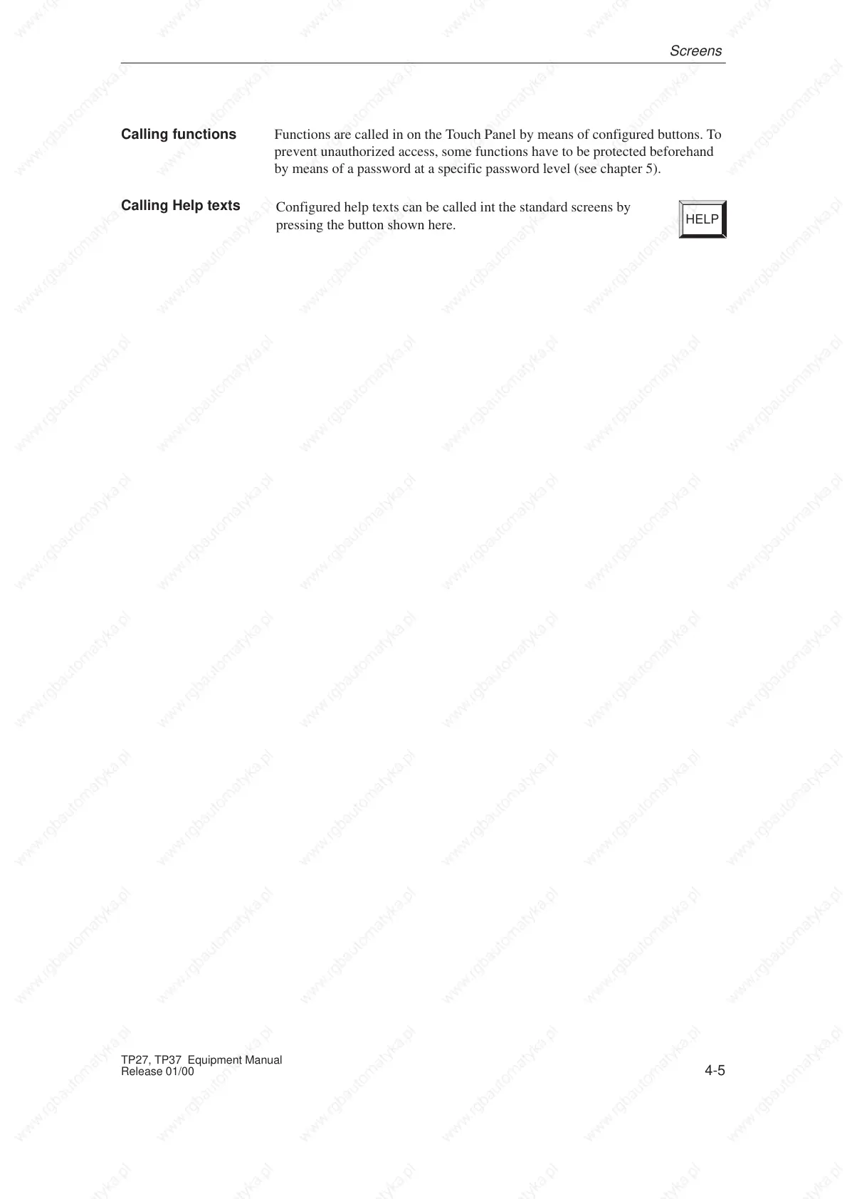 Functions are called in on the Touch Panel by means of configured buttons. To