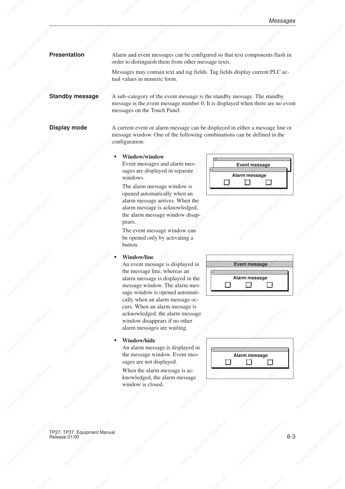 Messages may contain text and tag fields. Tag fields display current PLC ac-