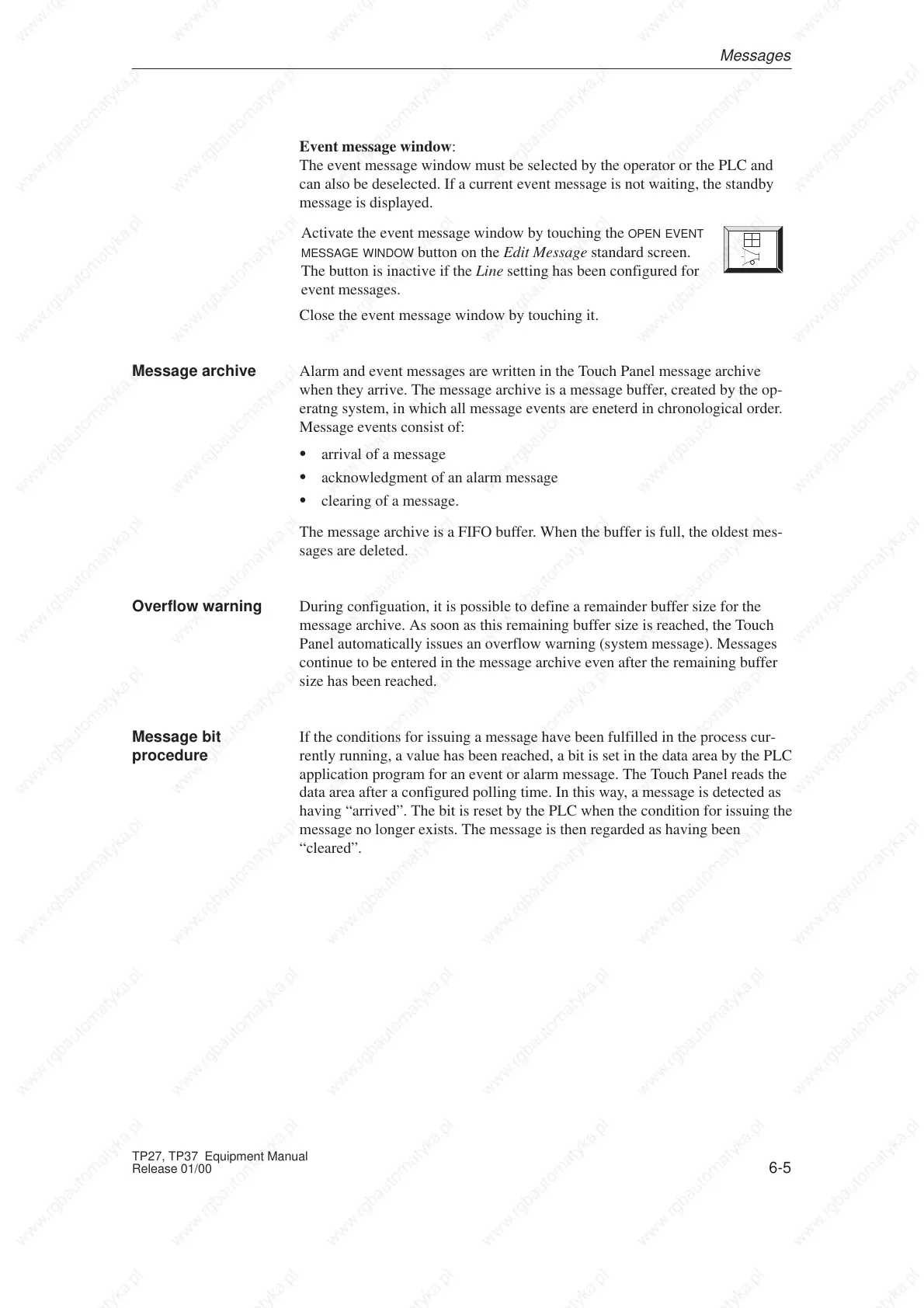 The event message window must be selected by the operator or the PLC and