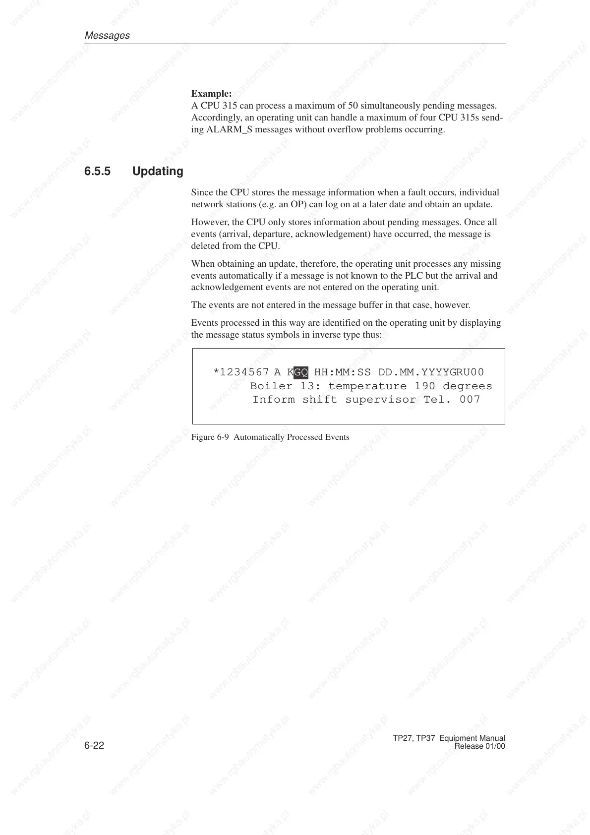 events automatically if a message is not known to the PLC but the arrival and