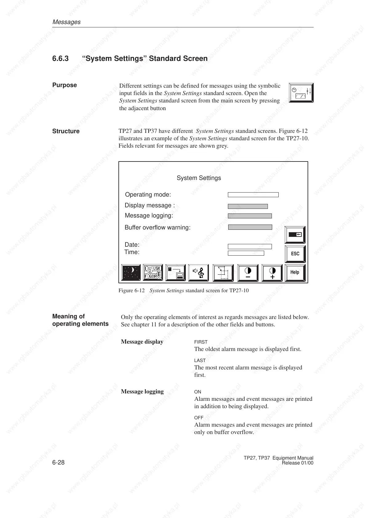 TP27 and TP37 have different System Settings standard screens. Figure 6-12