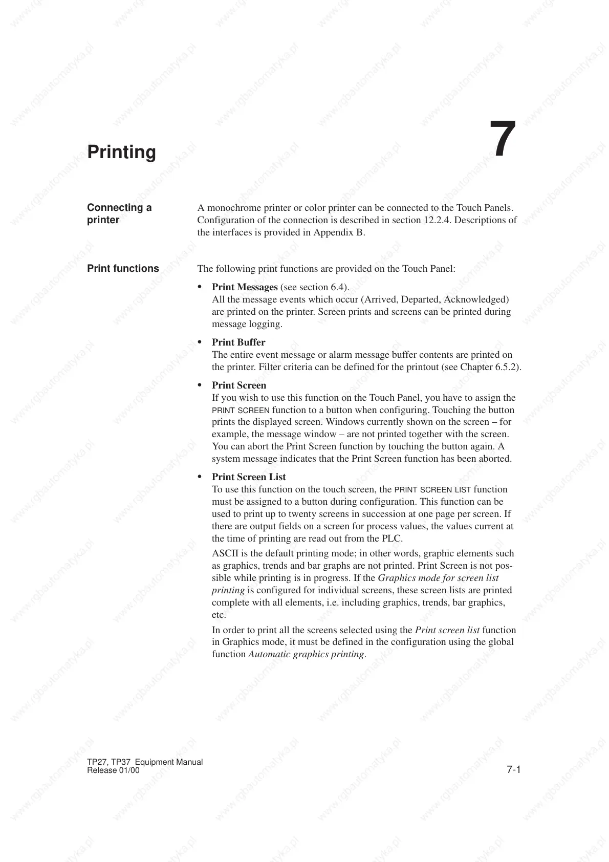 as graphics, trends and bar graphs are not printed. Print Screen is not pos-