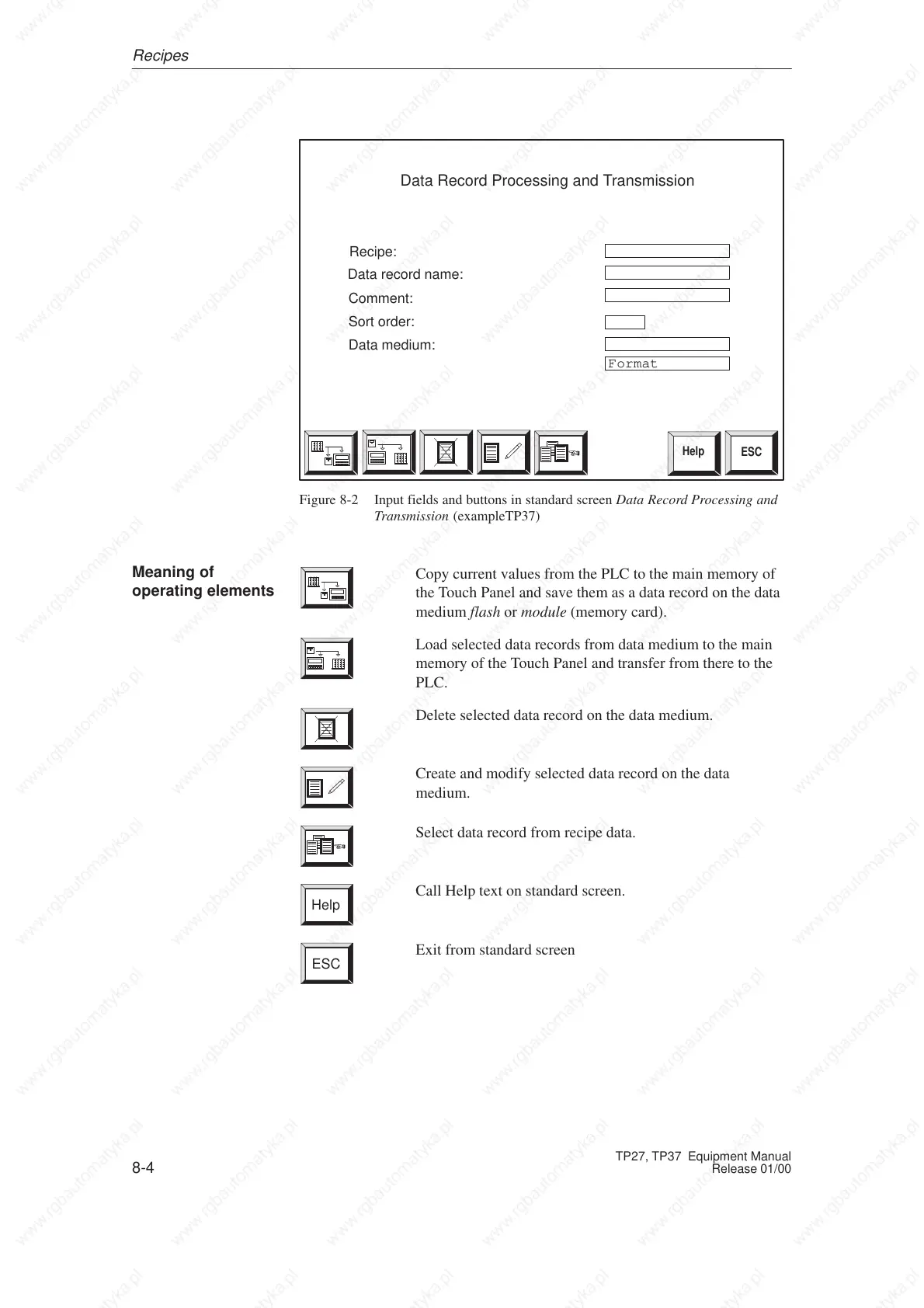 Figure 8-2 Input fields and buttons in standard screen Data Record Processing and