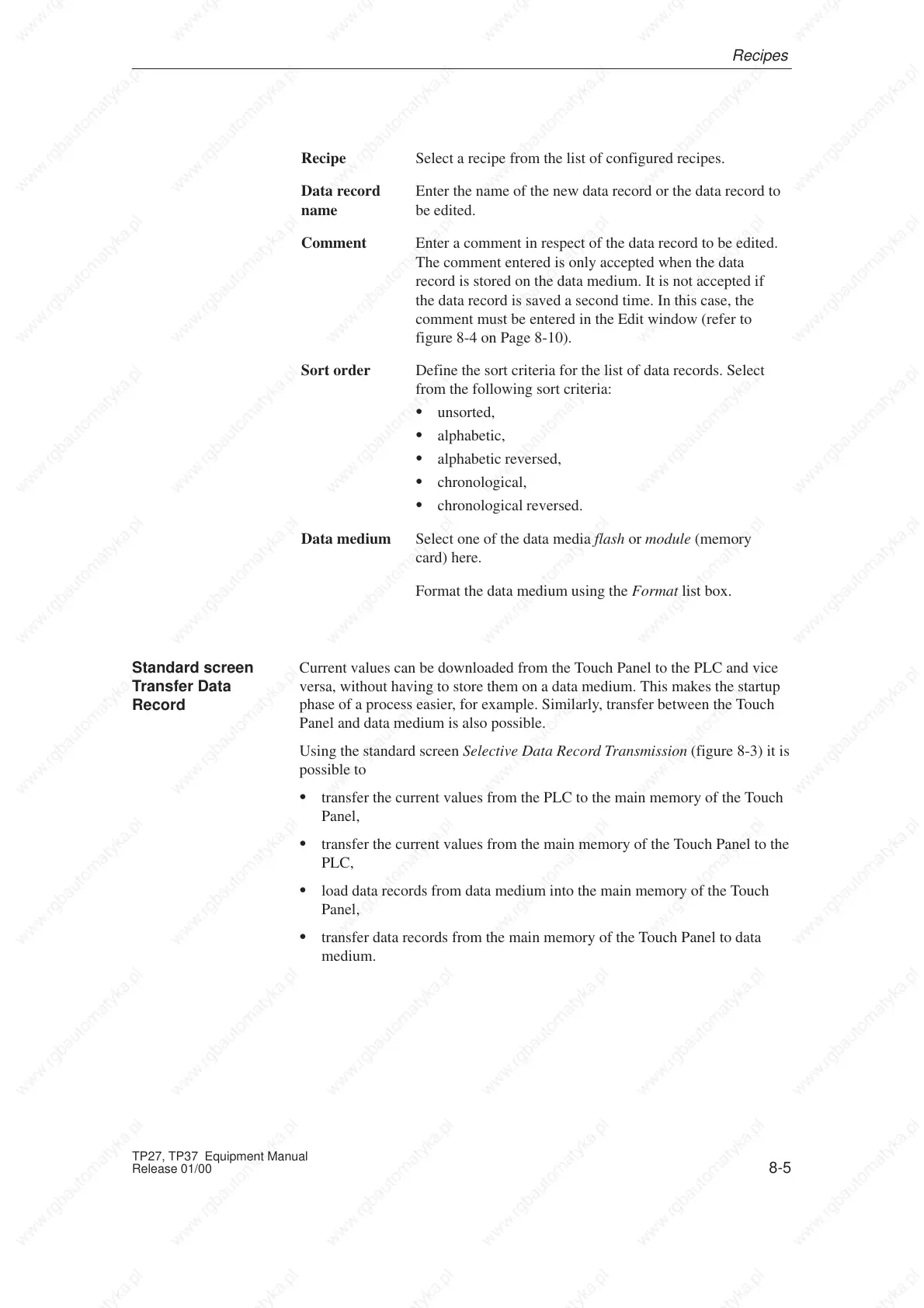 S transfer data records from the main memory of the Touch Panel to data