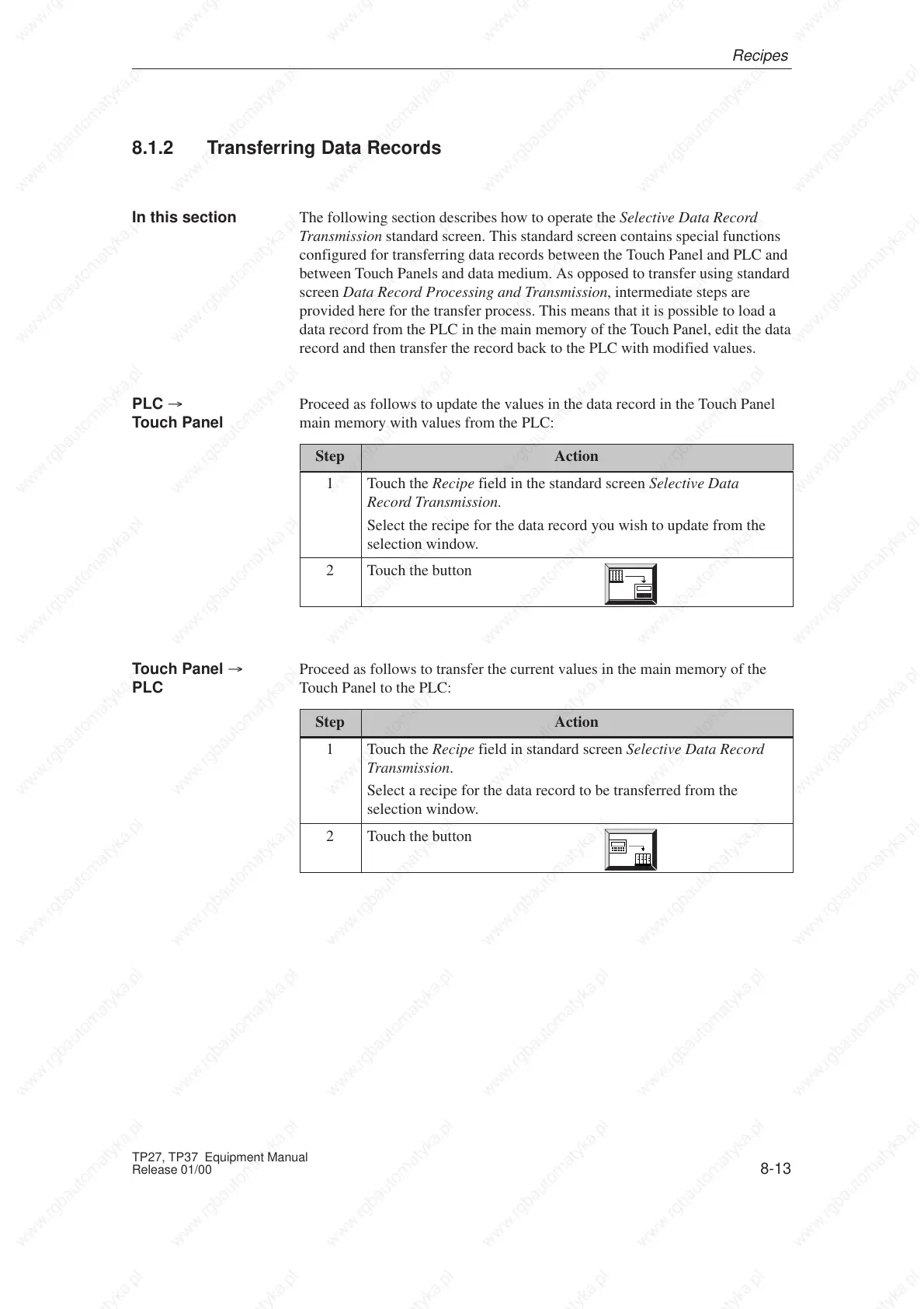 data record from the PLC in the main memory of the Touch Panel, edit the data