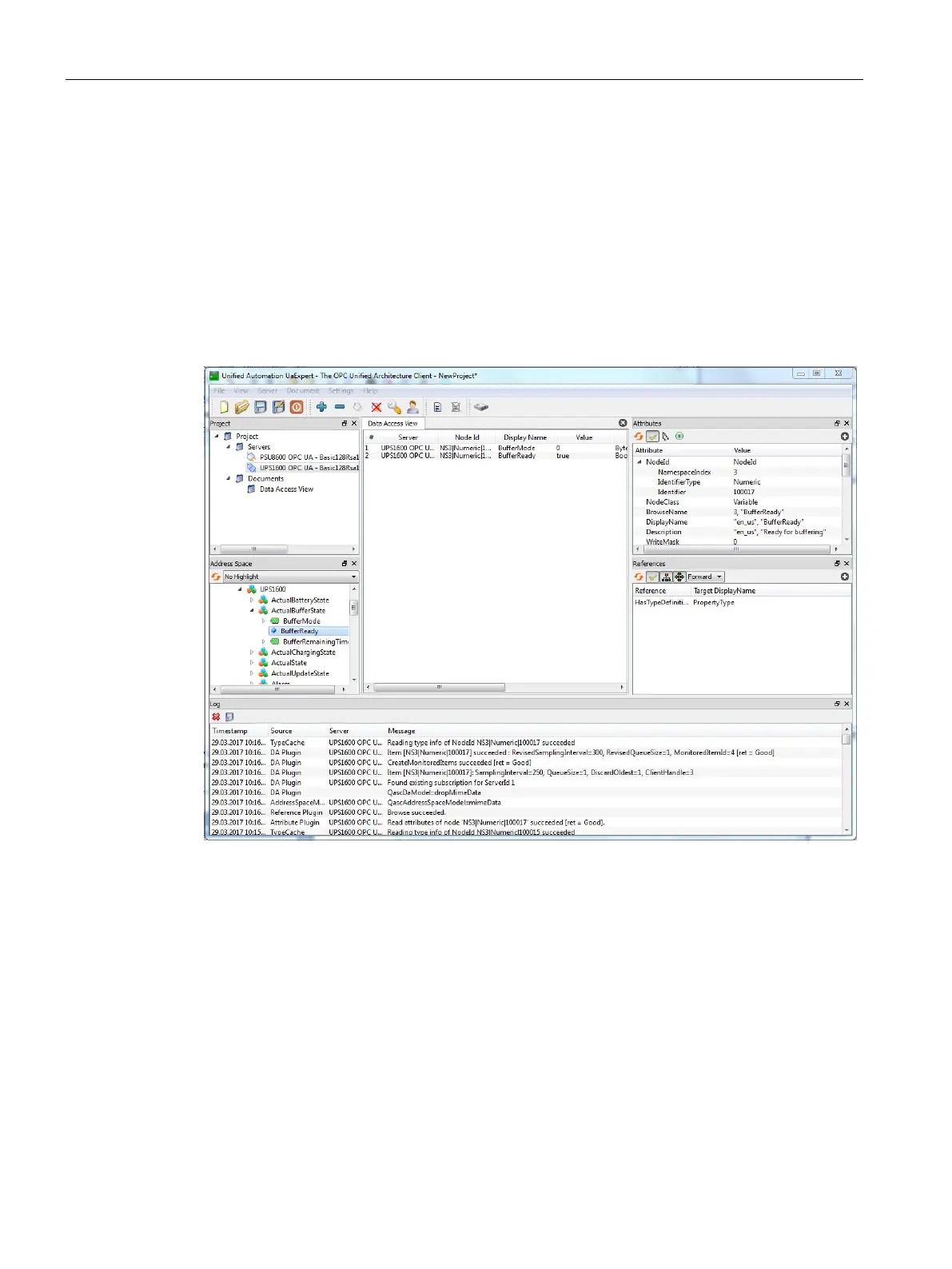 The actual values of a subscribed node are permanently displayed in area "Data Access