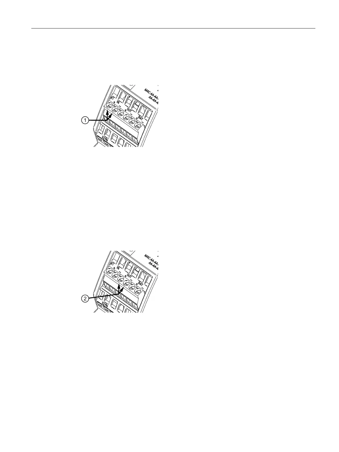 The 24 V power supply is connected at the "IN+", and "IN-" ① terminals (see Figure Input