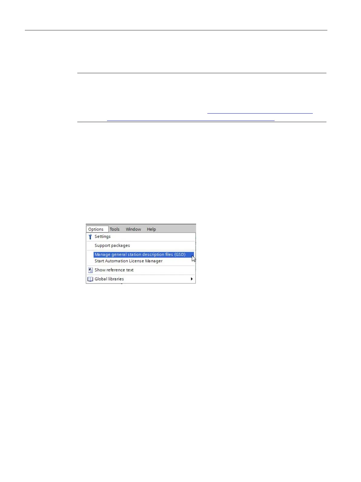 3. In the project view, click in the menu "Options" on "Install general station description file