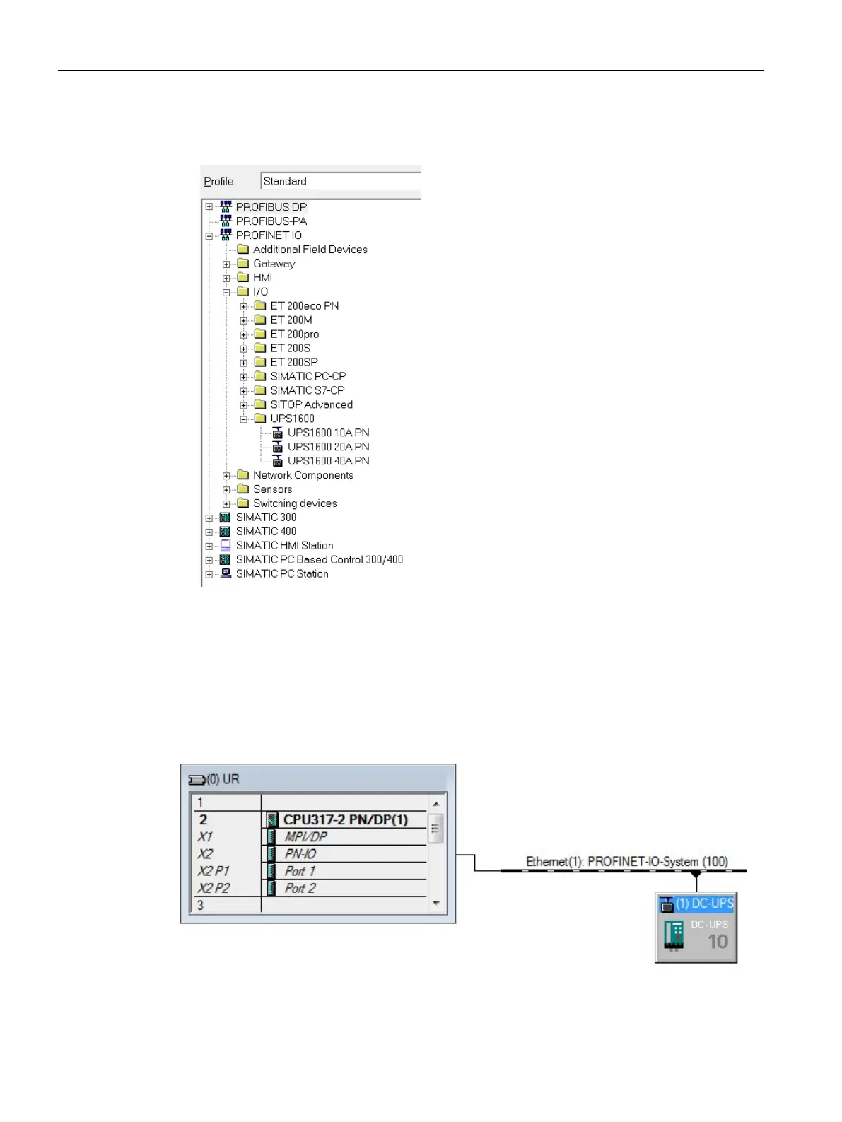 3. In the hardware catalog, navigate to the SITOP UPS1600 under "PROFINET IO \ I/O \