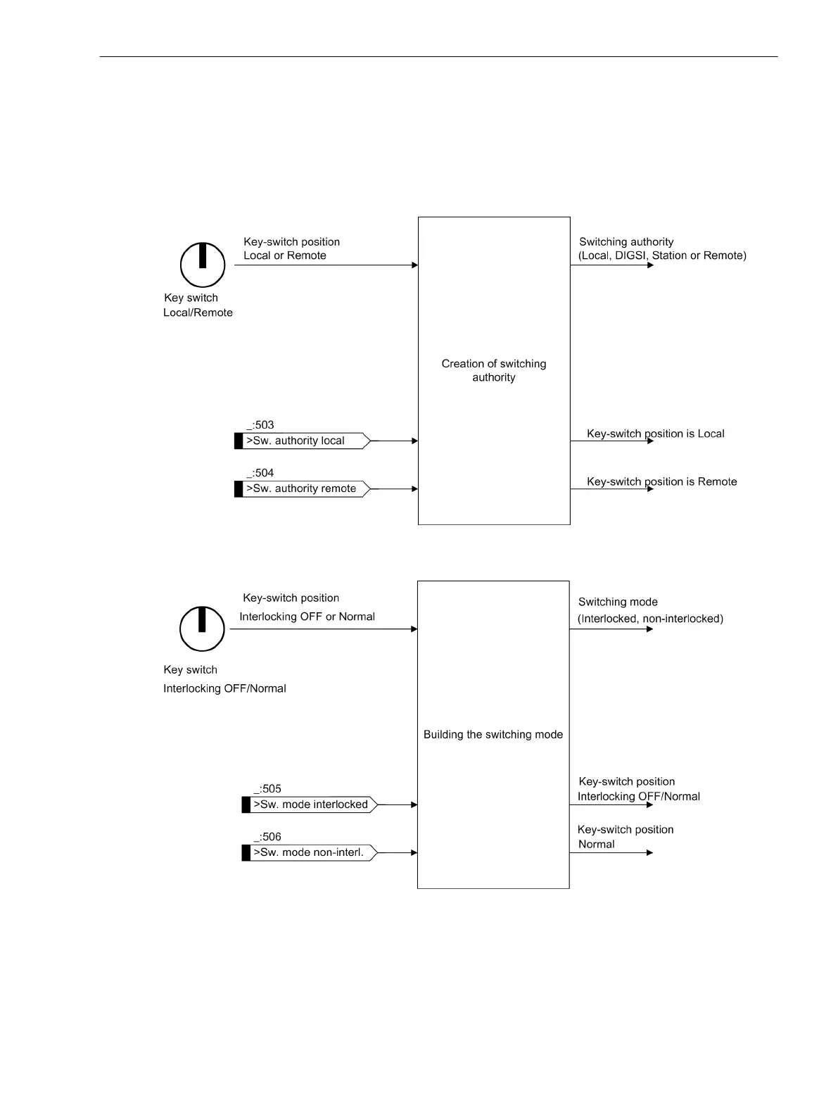 The Switching authority and Switching mode functions link the input signals and in this way establish