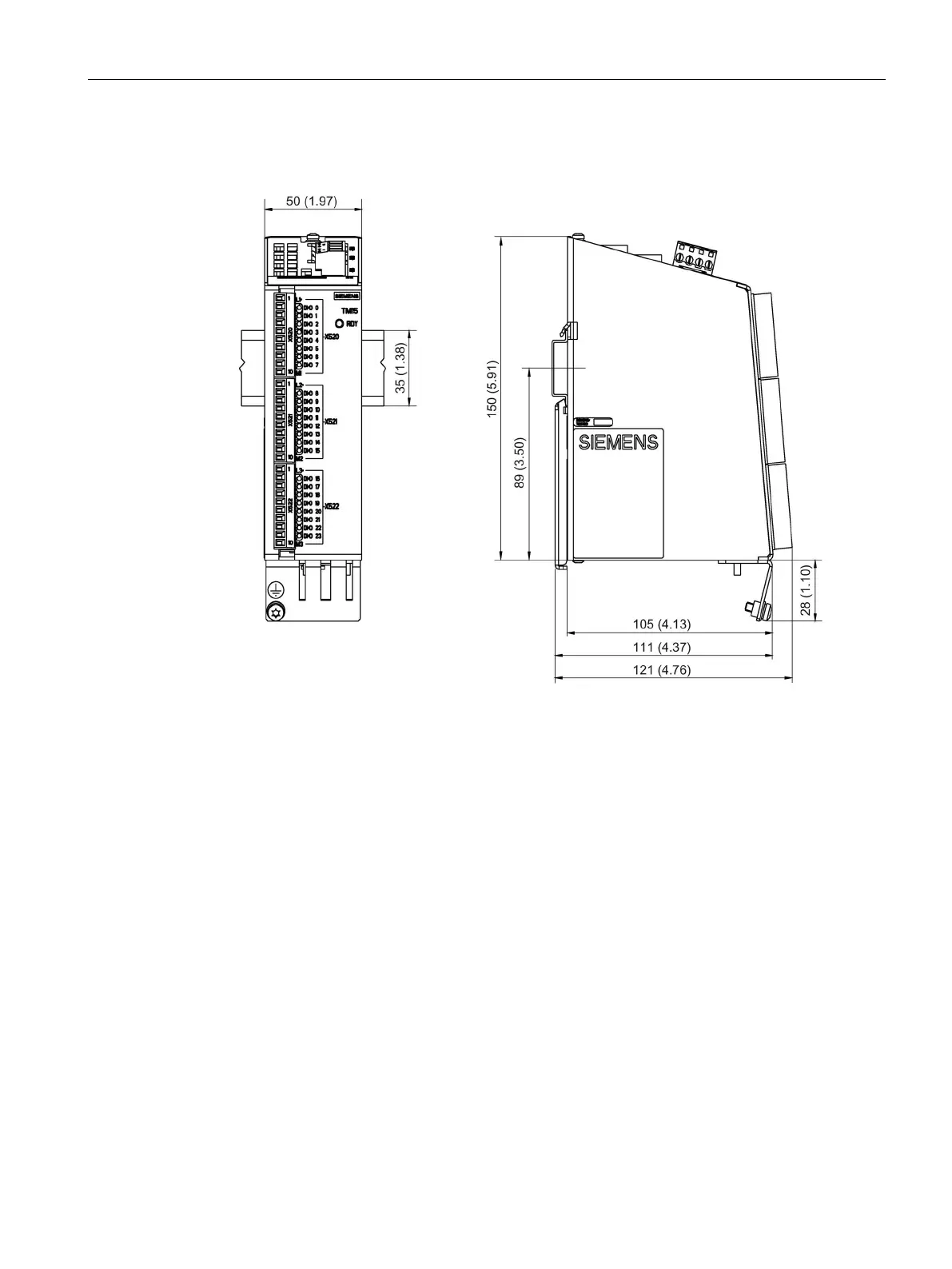 Figure 7-20 Dimension drawing of Terminal Module TM15, all data in mm and (inches)