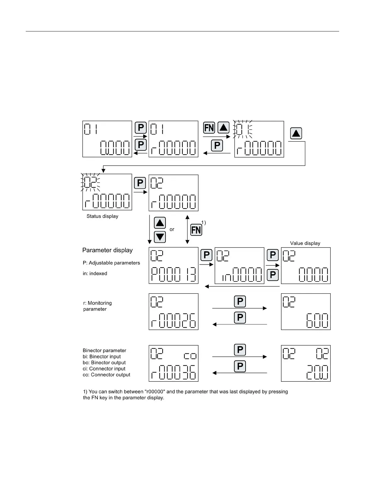 key. You can toggle between "r00000" and the parameter that was last displayed by