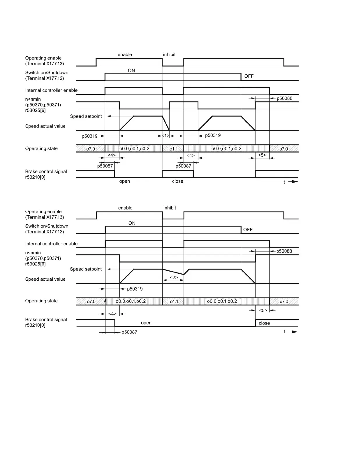 Figure 10-66 Holding brake (p50080 = 1), brake opening time (p50087) negative