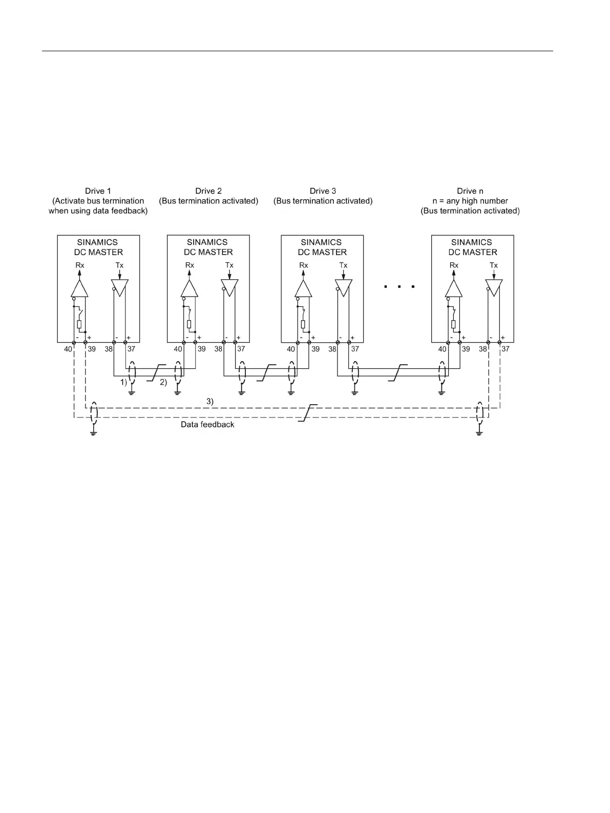 Optional data feedback, which drive 1 can use to monitor the functionality of the entire peer chain.