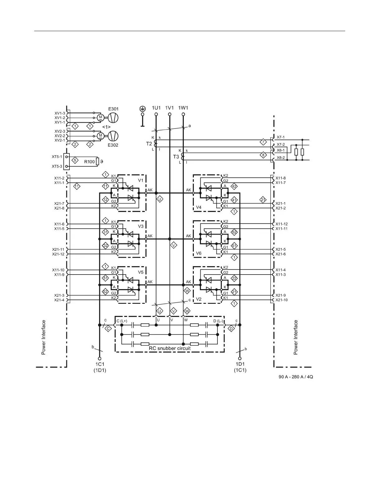 Figure 6-34 Power connections for 90 to 280 A/4Q devices