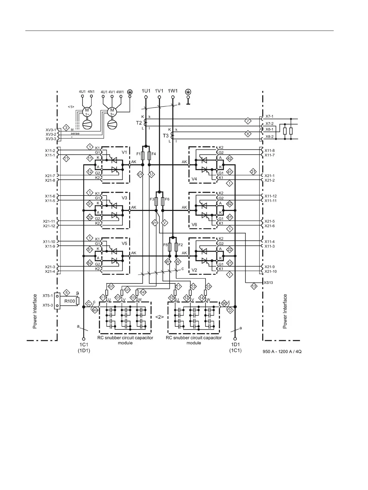 Figure 6-37 Power connections for 900 to 1200 A/4Q devices
