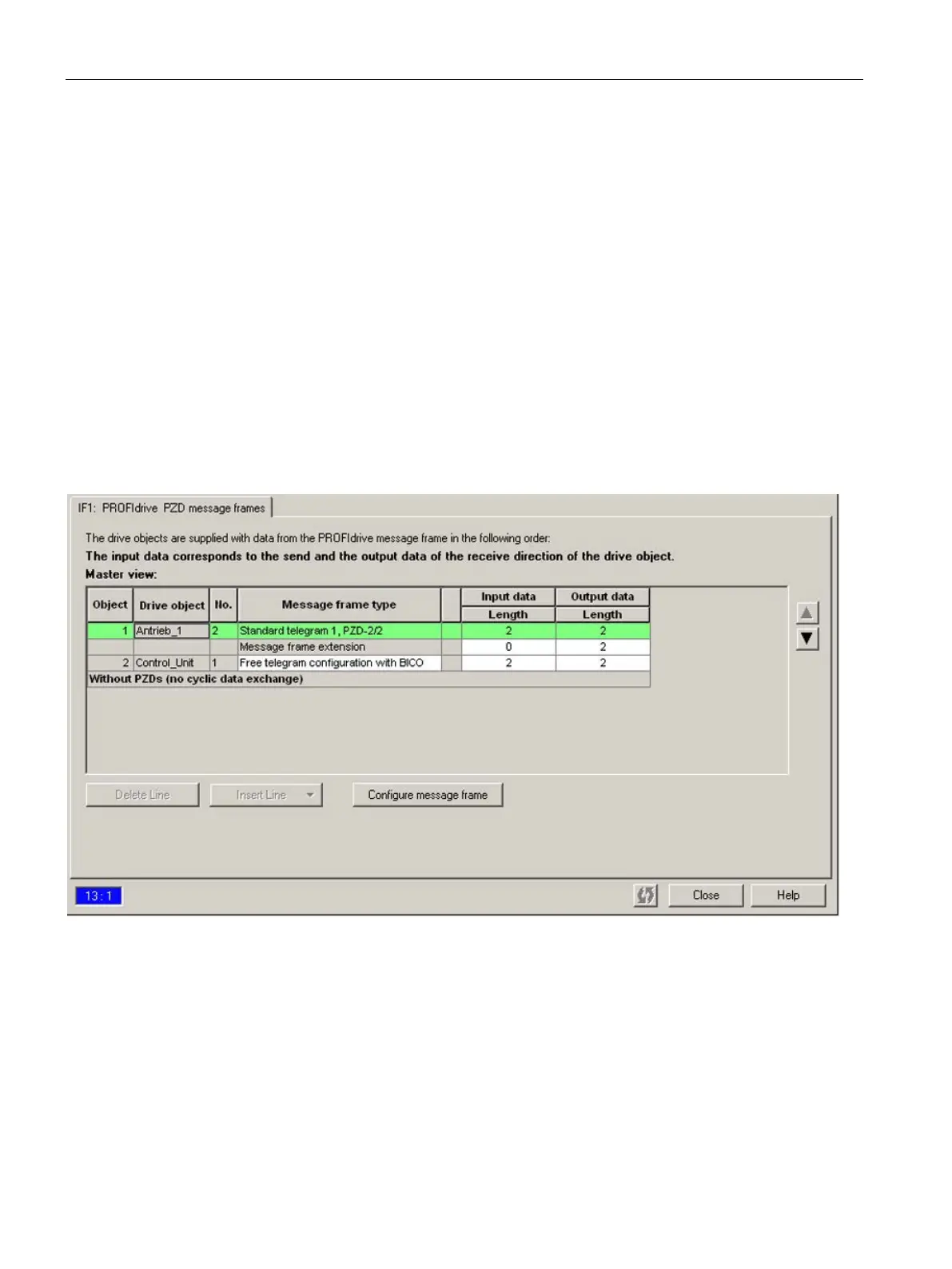 drive objects (in the example: Standard telegram 1), which results in a split display of the