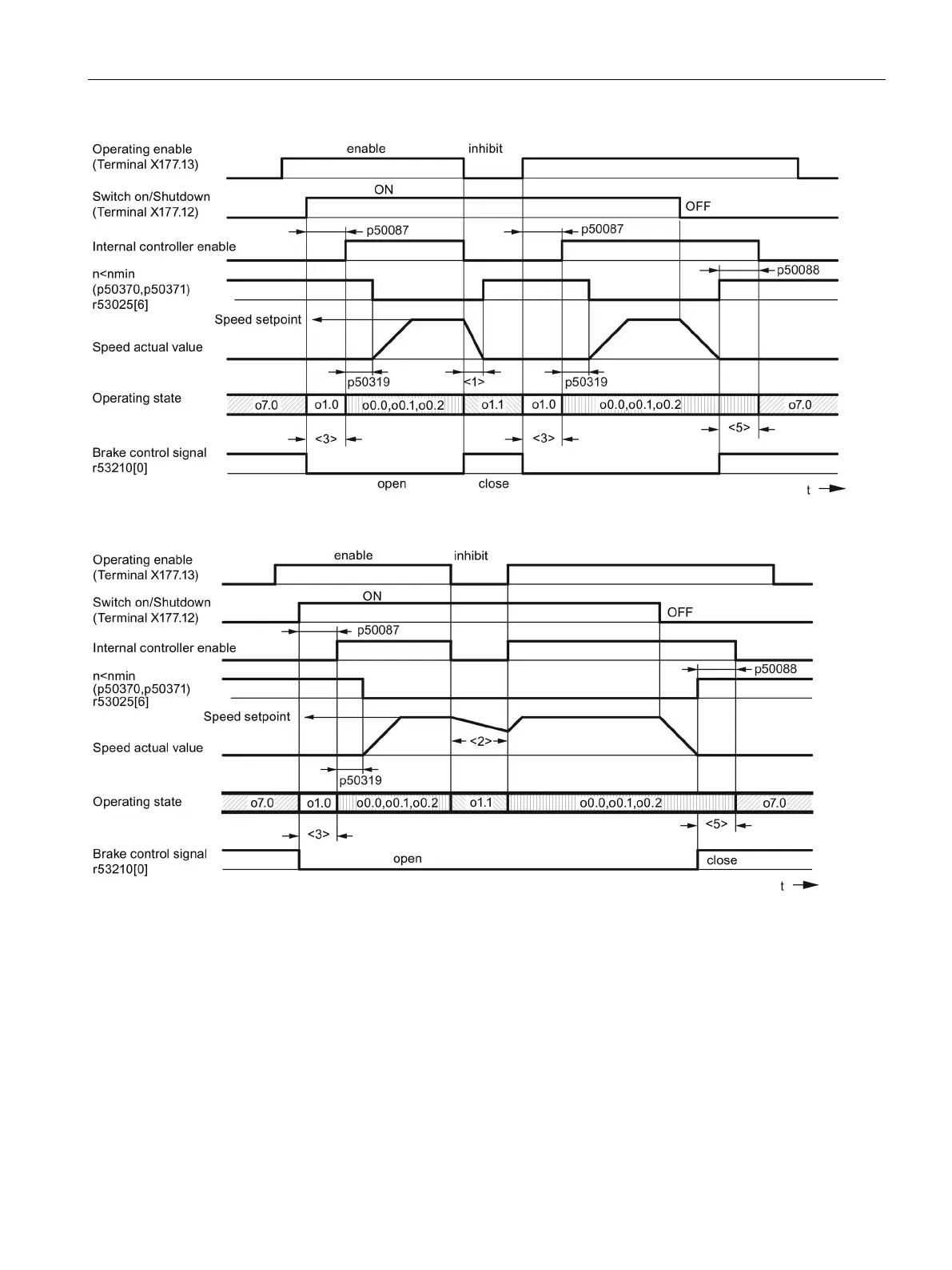 Figure 10-64 Holding brake (p50080 = 1), brake opening time (p50087) positive