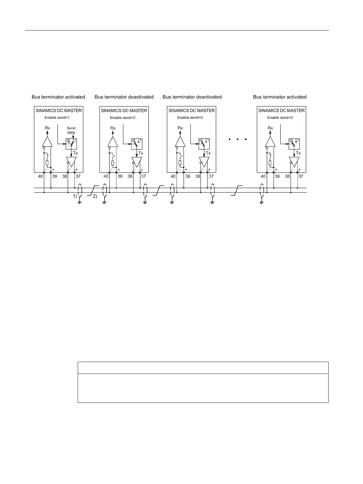Up to 31 drives receive the same setpoints from a drive. The drive that sends the setpoints