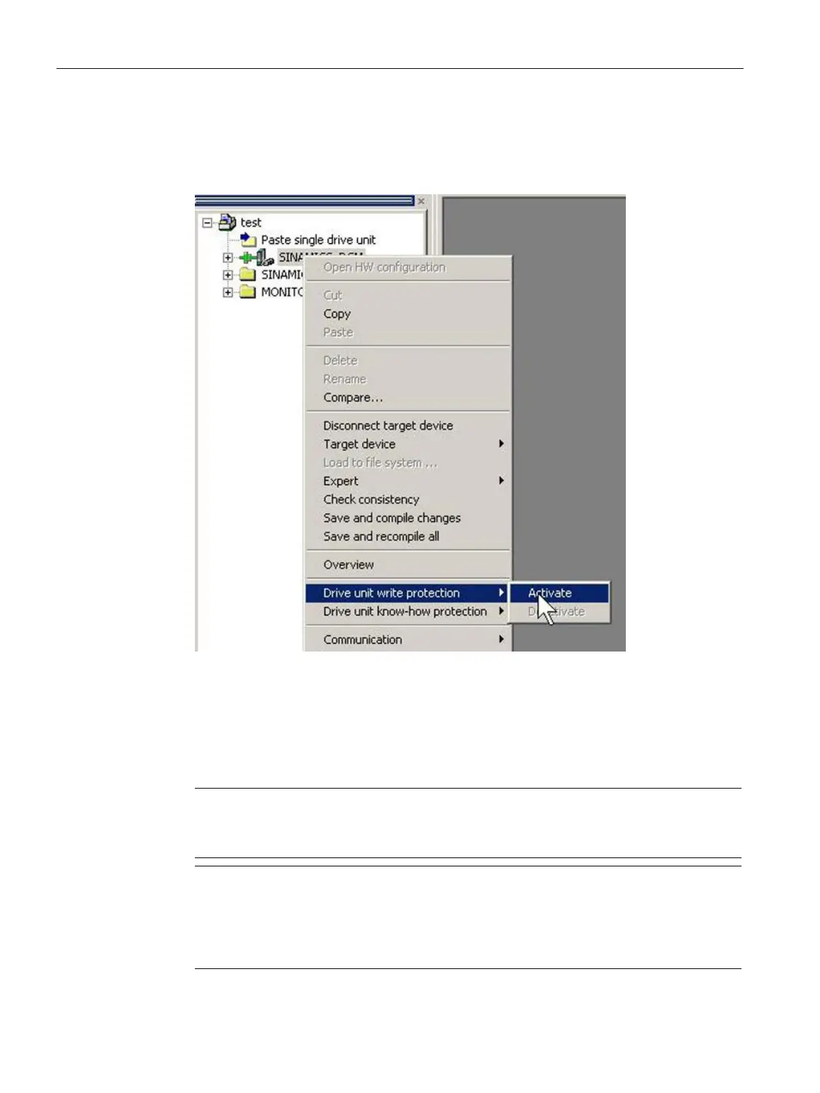 6. Call the shortcut menu "Write protection drive unit > Activate".