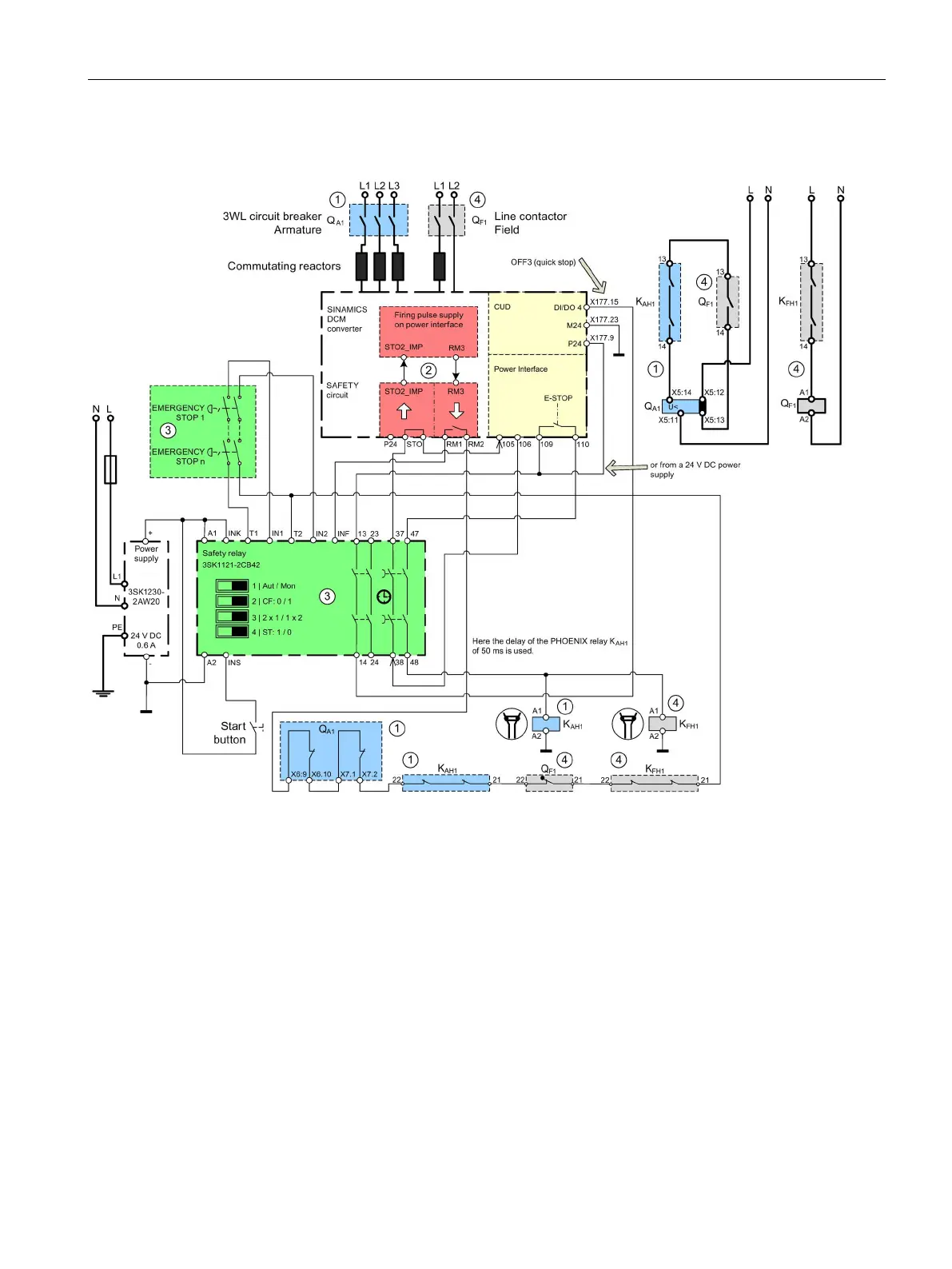 Contact blocks for field excitation (gray): Line contactor field + field auxiliary contactor (also as the field contactor is