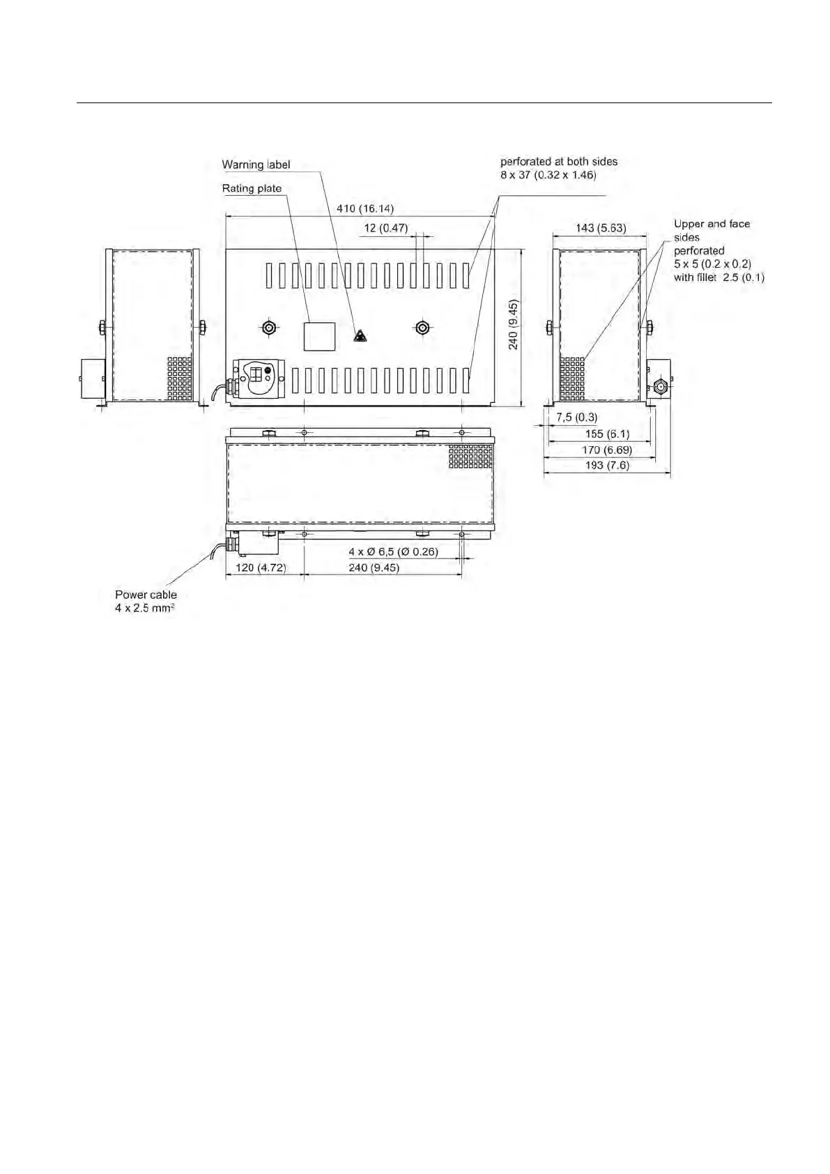 Figure 3-37 1500 W damping resistor for HFD line reactors, all dimensions in mm and (inches)